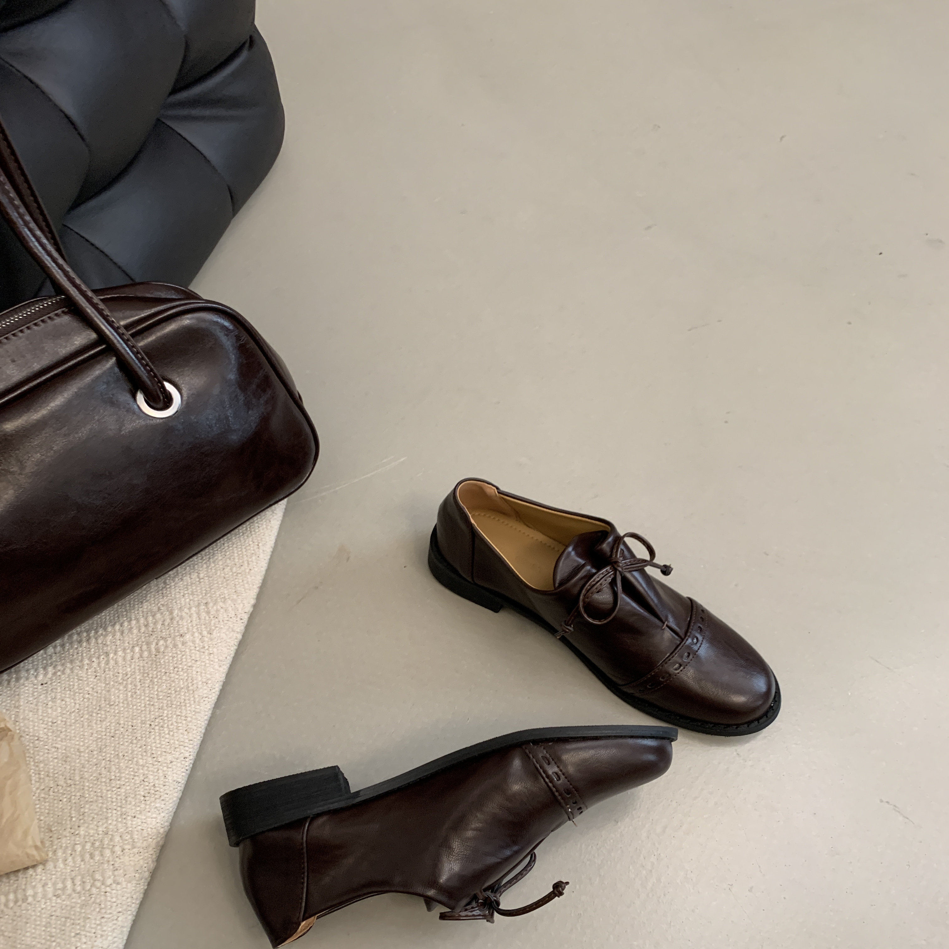 英伦风系带休闲乐福鞋女粗跟做旧复古布洛克单鞋