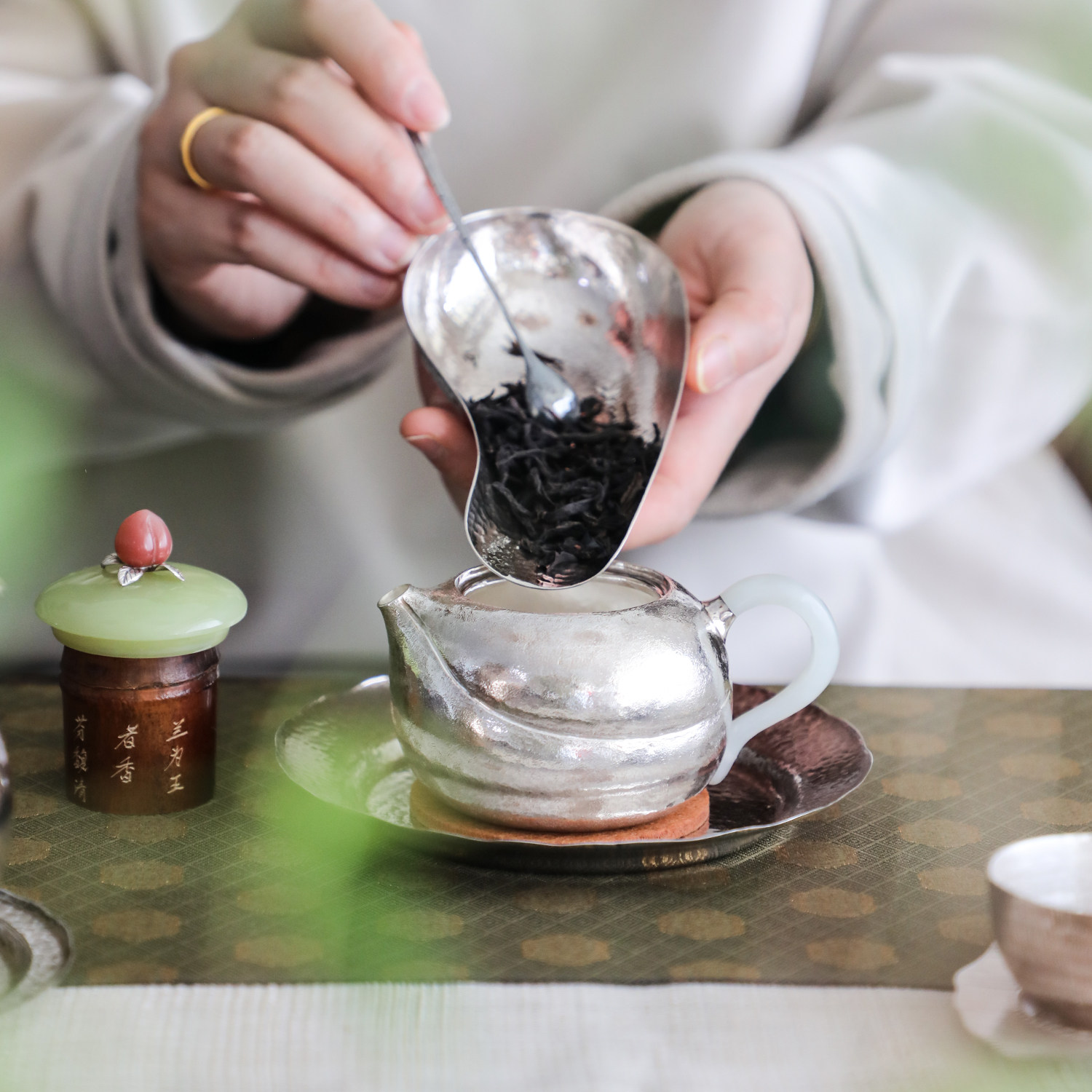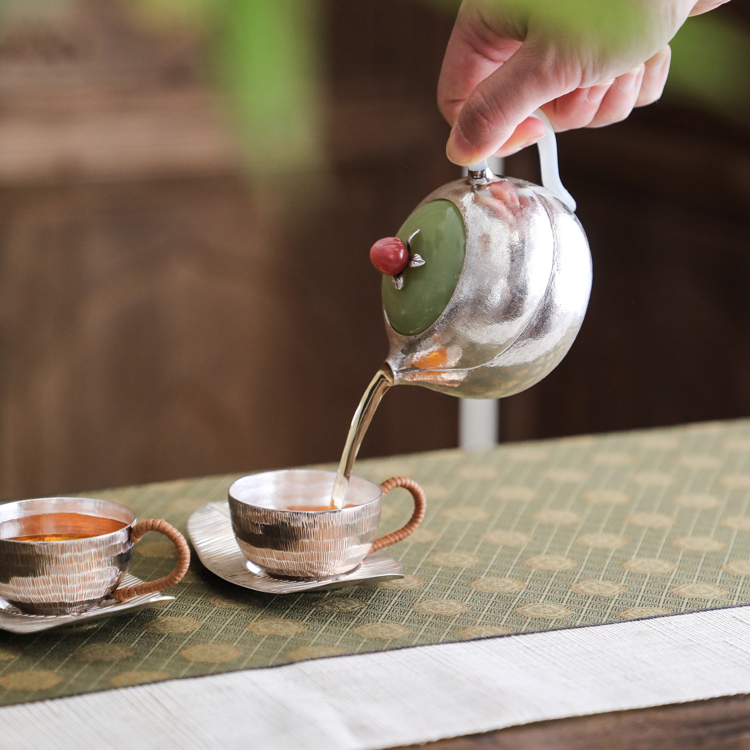 纯银时代 玉桃银壶足银999纯手工泡茶壶家用可爱银茶壶170ml