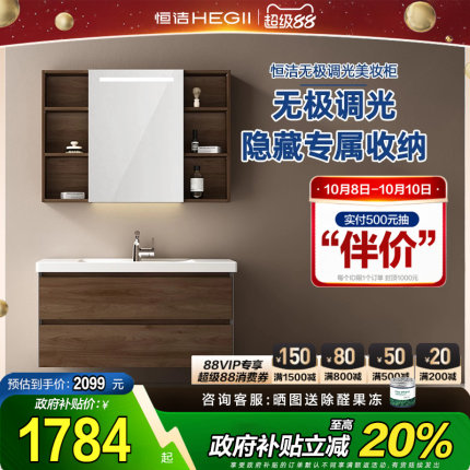 【政府补贴】恒洁浴室柜组合卫生间洗手智能镜柜陶瓷一体盆6223