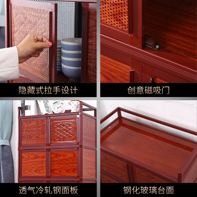 放碗柜家用厨房橱柜简易收纳柜子储物柜置物柜多功能经济型不锈钢