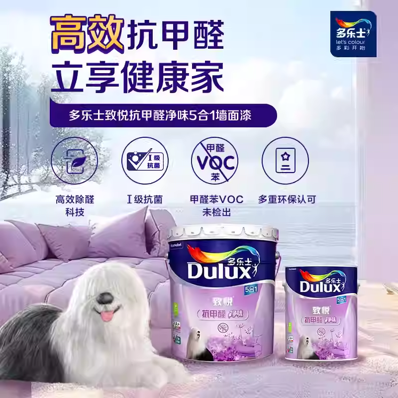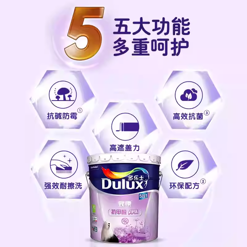多乐士乳胶漆家用抗菌抗甲醛净味防霉5合1内墙涂料环保自刷面漆