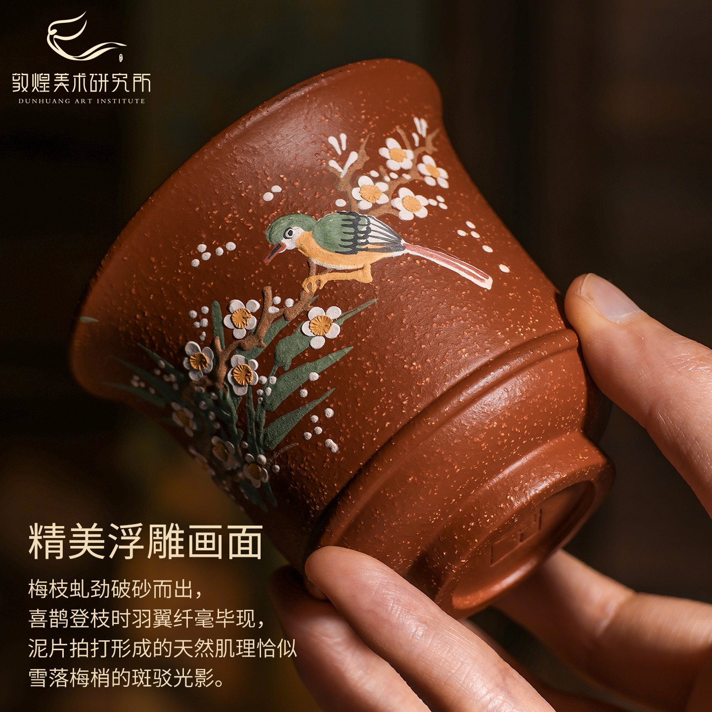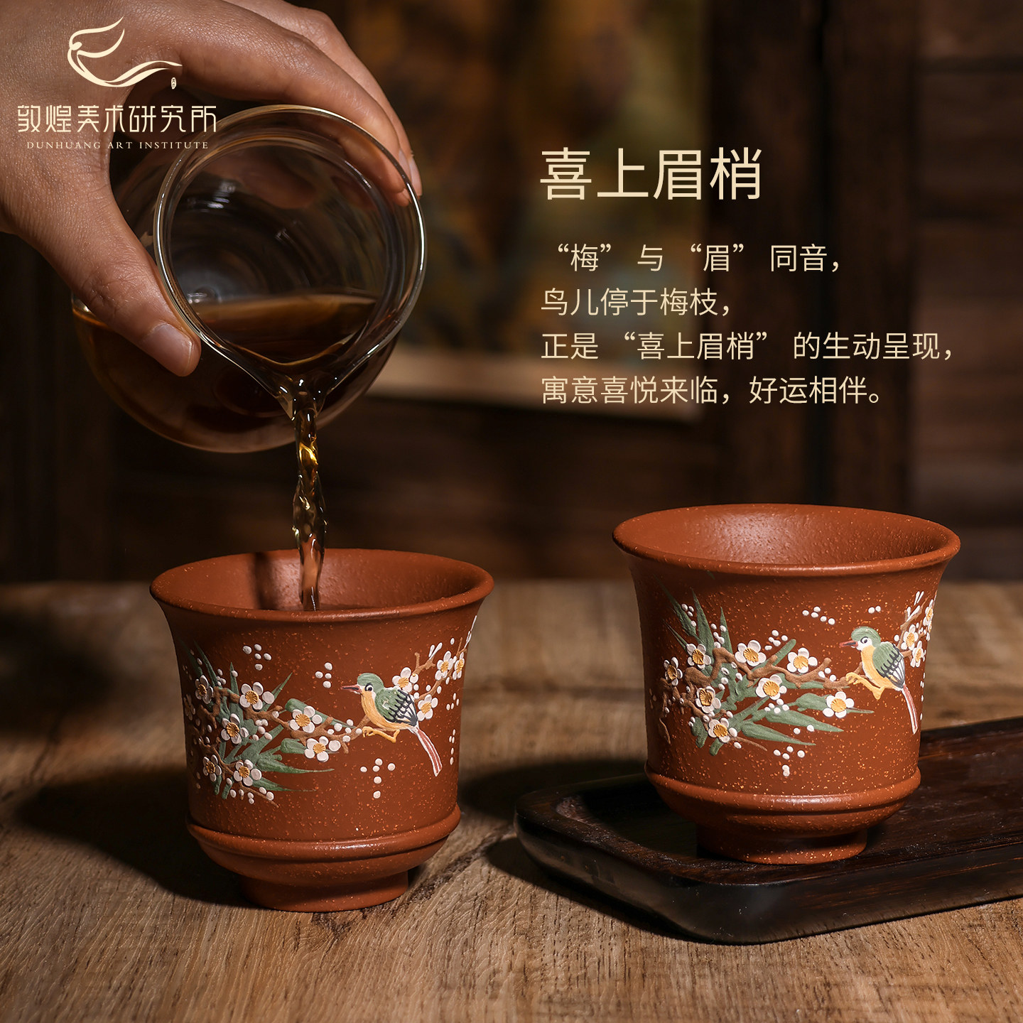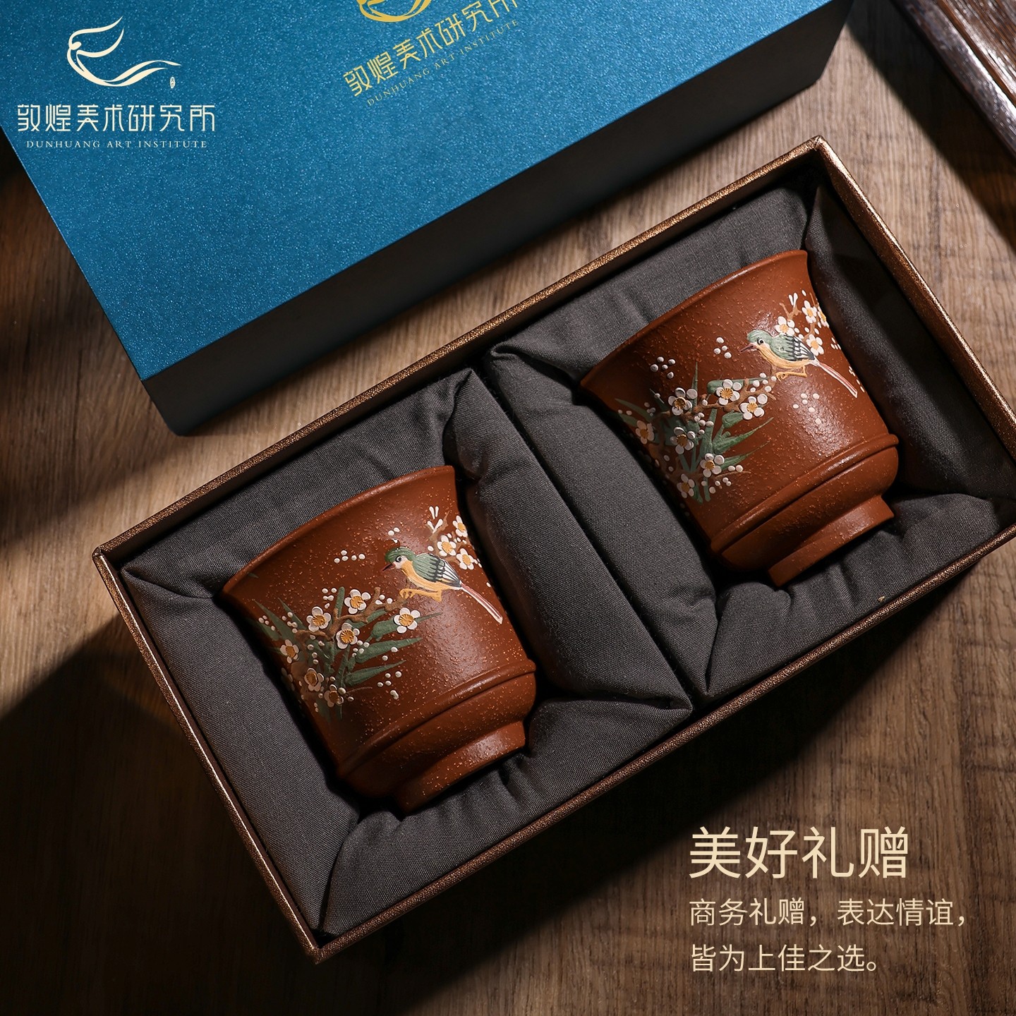 敦煌喜上眉梢紫砂对杯礼盒宜兴原矿紫泥新人结婚礼物新婚礼品高档