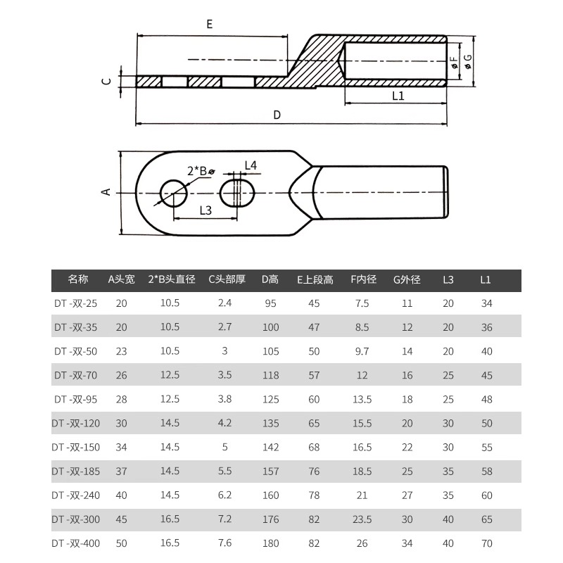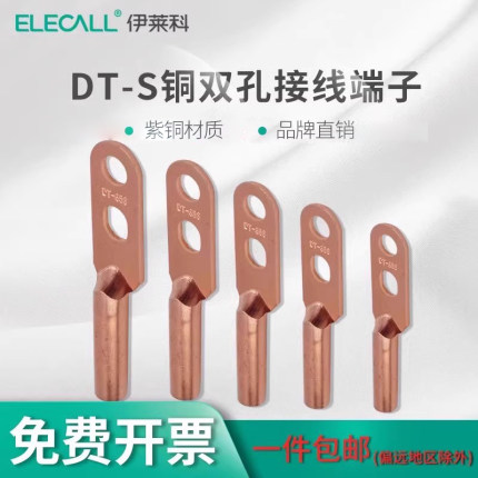 双孔铜鼻子25接线端子35紫铜50加厚70铜线耳95双眼DTS过渡120平方