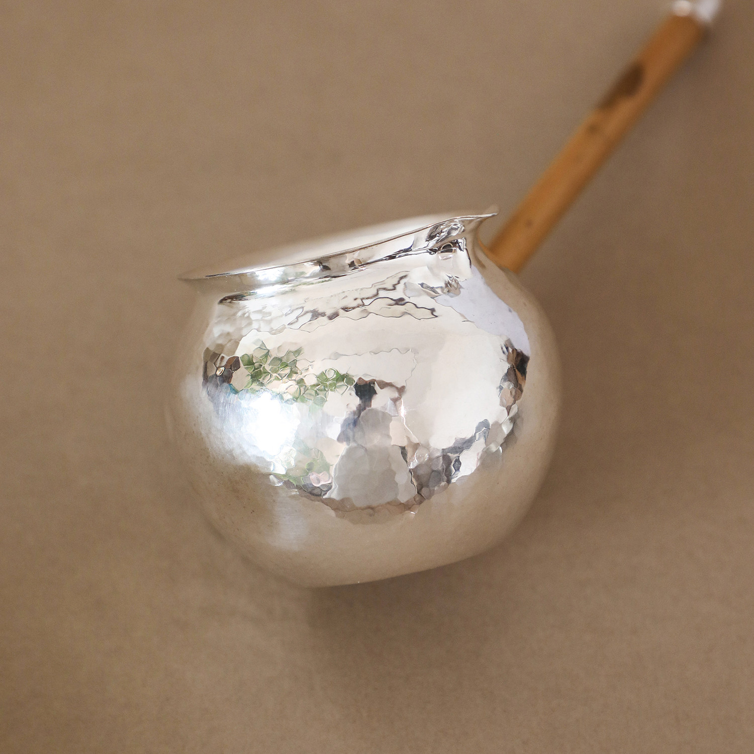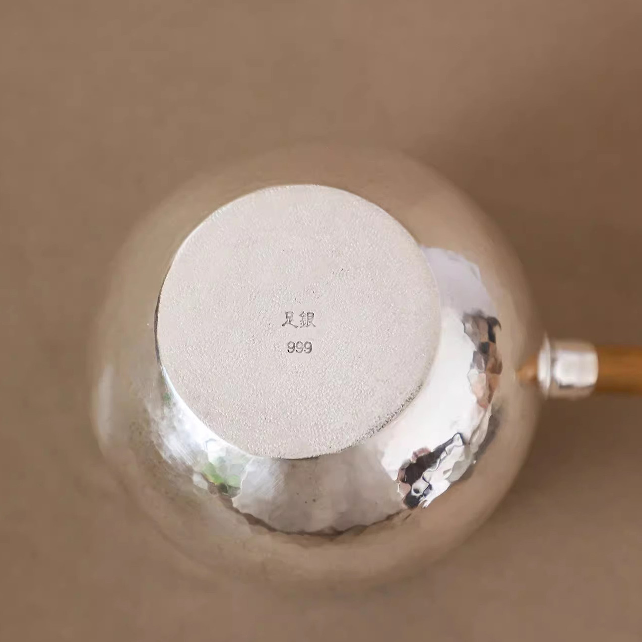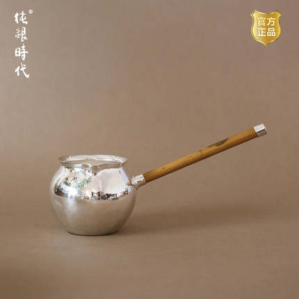 纯银时代银公道杯 足银999湘妃竹侧把分茶器云南手工烤茶罐200ml