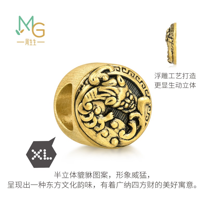 周生生Charme XL酷黑貔貅浮雕足金黄金转运珠串珠93832C