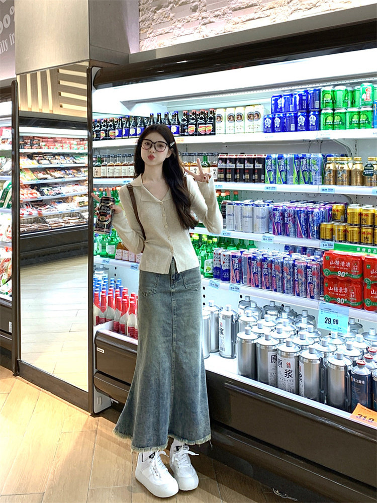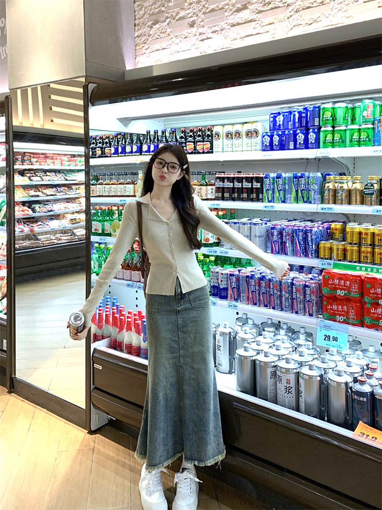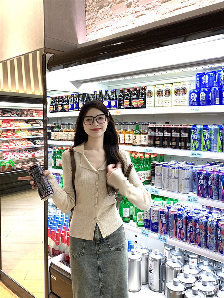 Polo领长袖针织开衫上衣毛衣外套