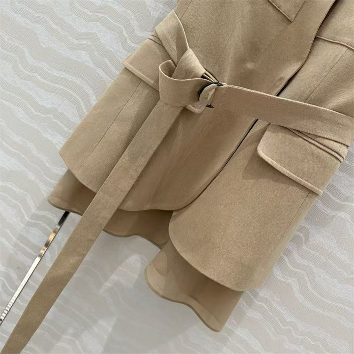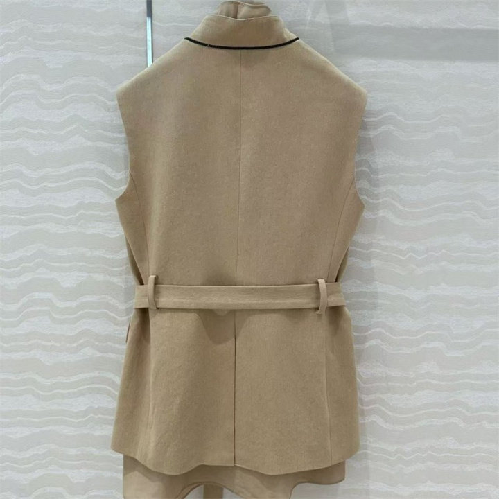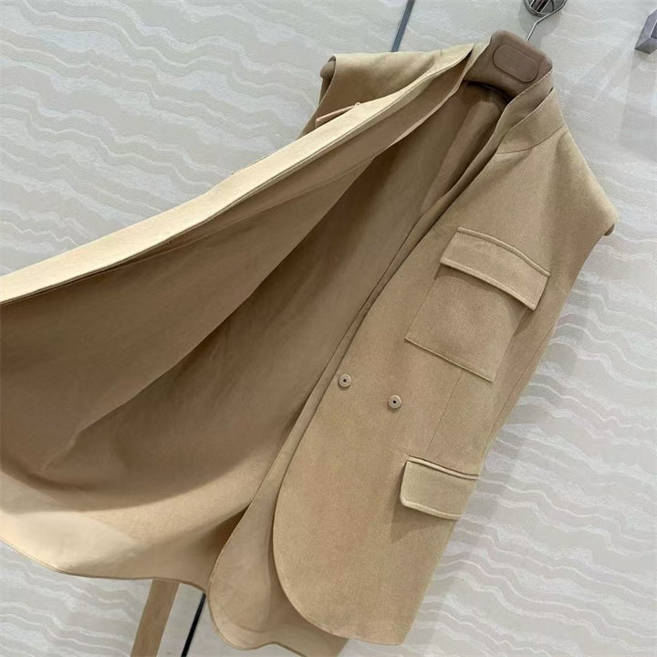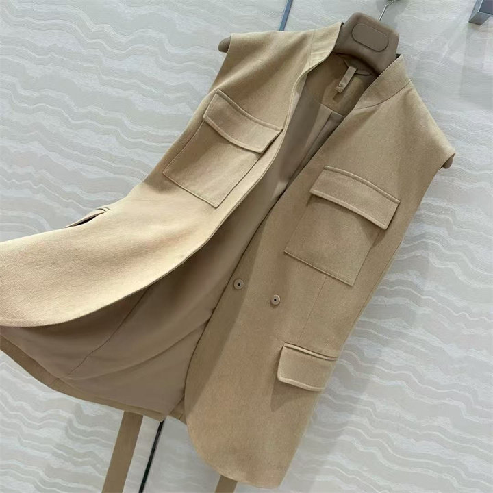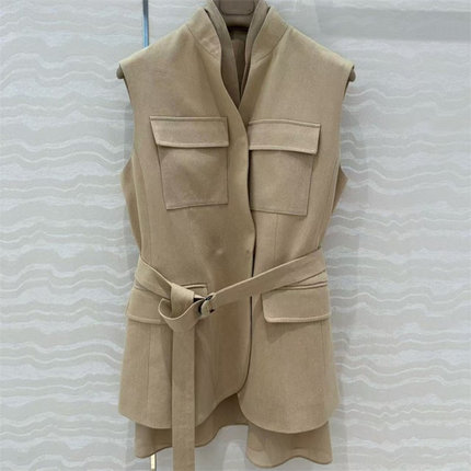 韩版两件式系带收腰进口斜纹棉亚麻剑领西装中长款马甲外套上衣女