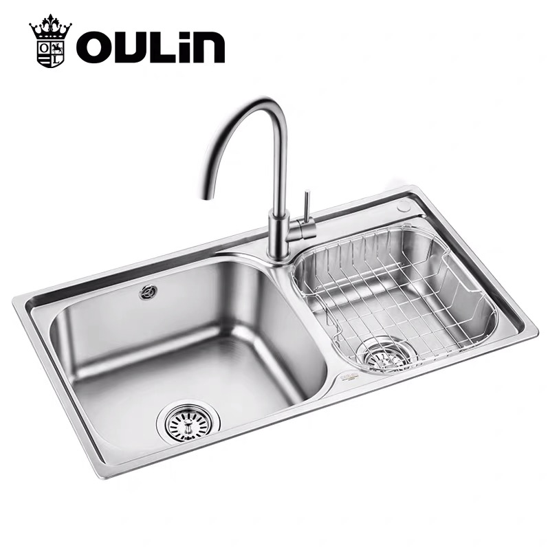 欧琳水槽双槽套餐 厨房洗菜盆304不锈钢水槽厨房家用水槽76420