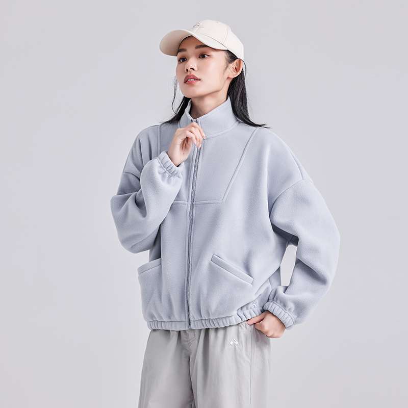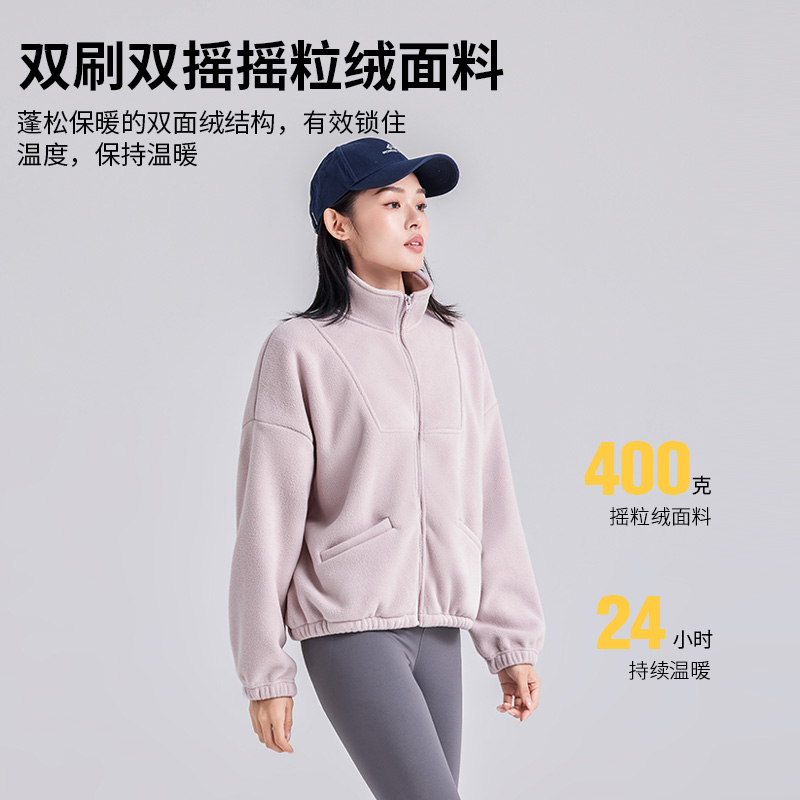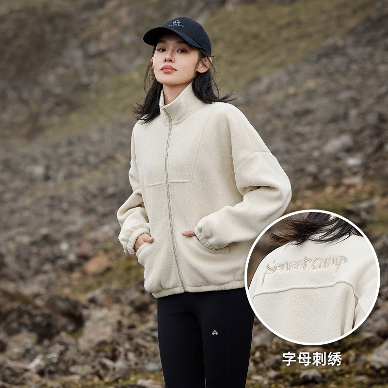 拓路者秋冬摇粒绒立领保暖外套女加绒开衫运动卫衣户外休闲抓绒衣
