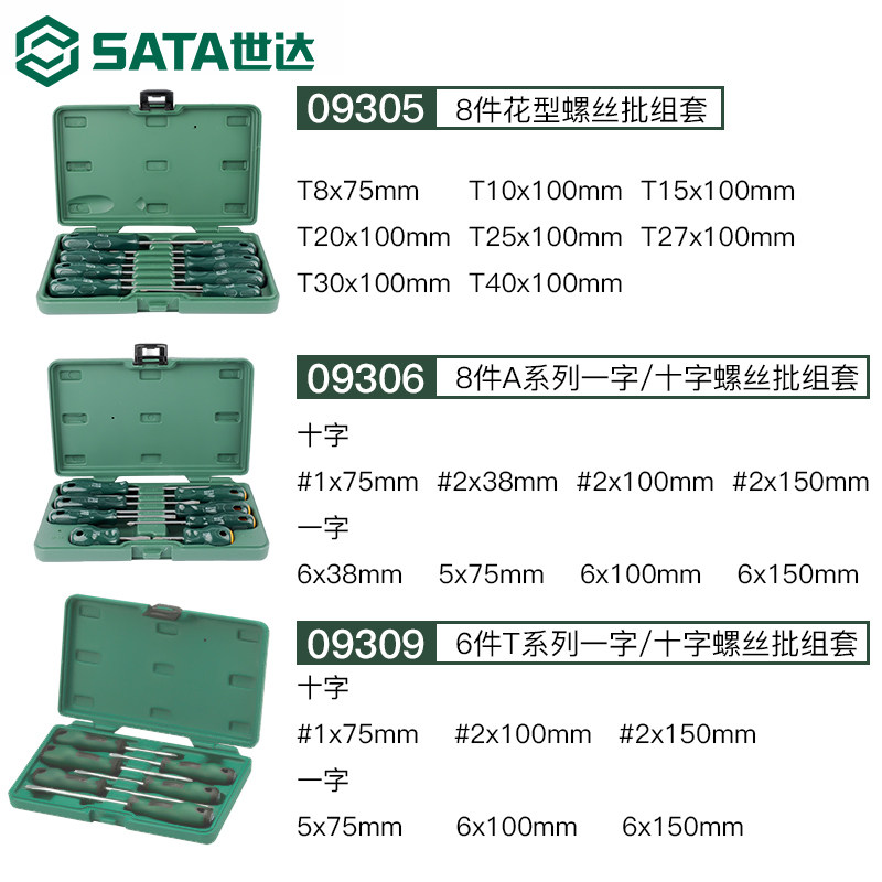 世达螺丝刀工具箱套装A系列8件一字十字花形多功能梅花螺丝批起子