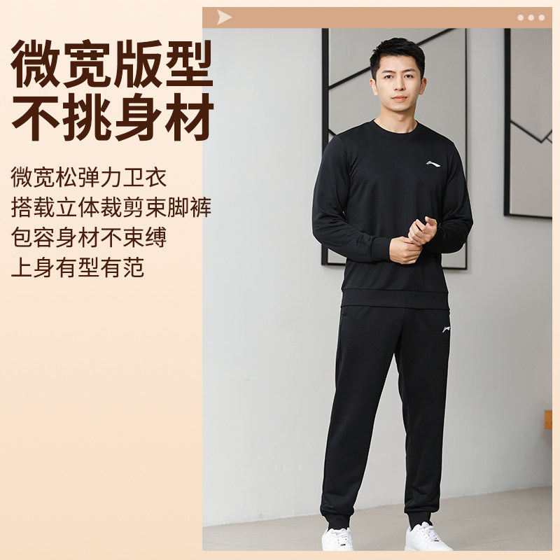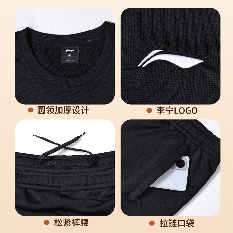 李宁运动服套装男士2025秋冬季新款加绒圆领卫衣卫裤跑步长裤休闲