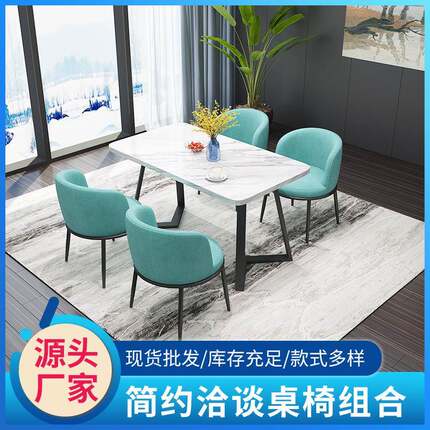 轻奢洽谈桌椅组合接待会客现代餐桌咖啡厅奶茶店网红长方形桌子