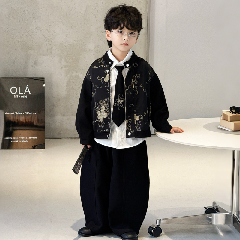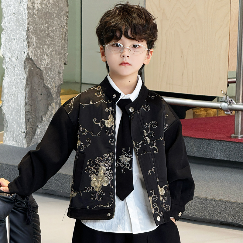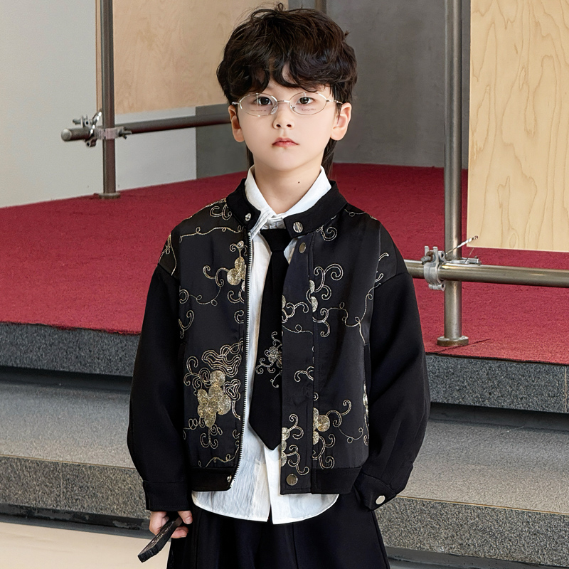 男童外套春装2025新款男宝宝痞帅新中式绣花夹克衫儿童秋冬季上衣