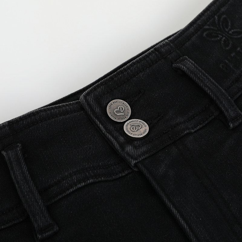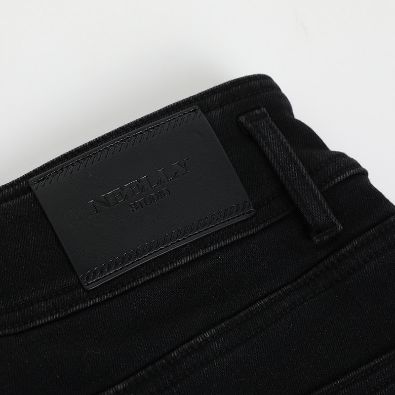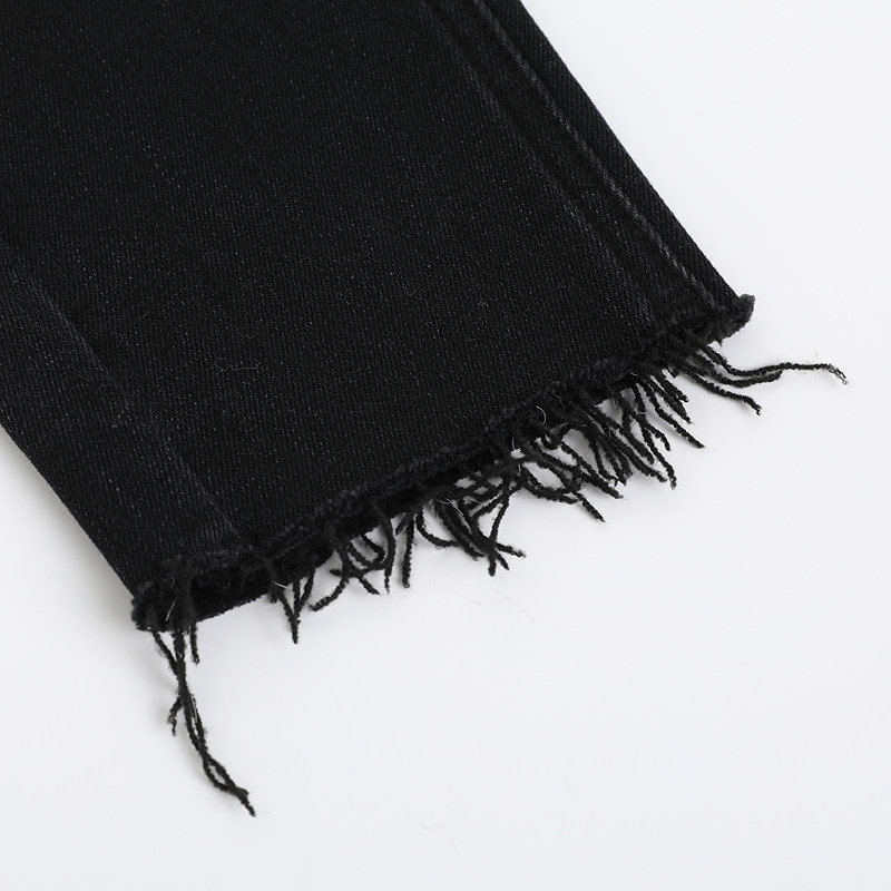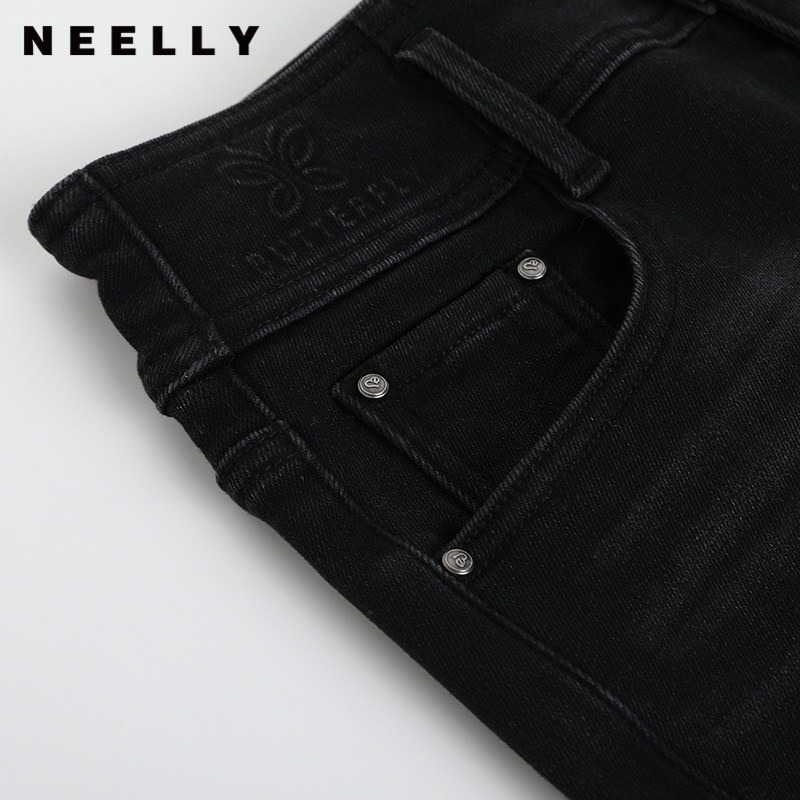 NEELLY纳俪商场同款冬新款简约显瘦小脚牛仔裤女毛边休闲紧身长裤