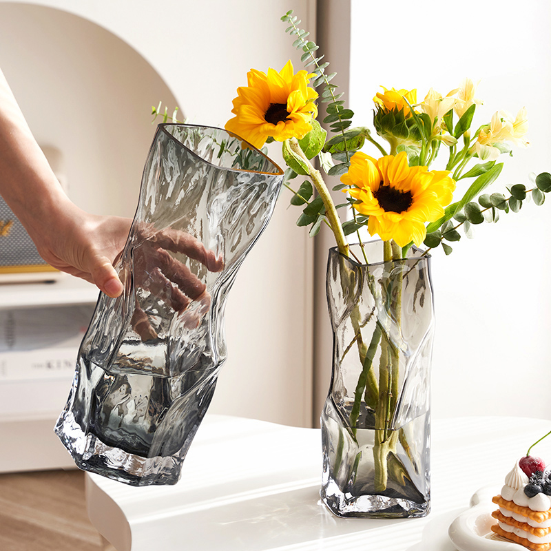 高级感轻奢几何创意玻璃花瓶透明水养鲜花富贵竹花瓶客厅插花摆件