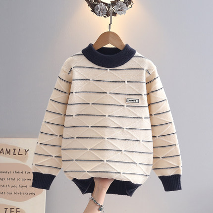 男童毛衣条纹秋冬2025新款圆领儿童针织衫加厚保暖中大童学生上衣