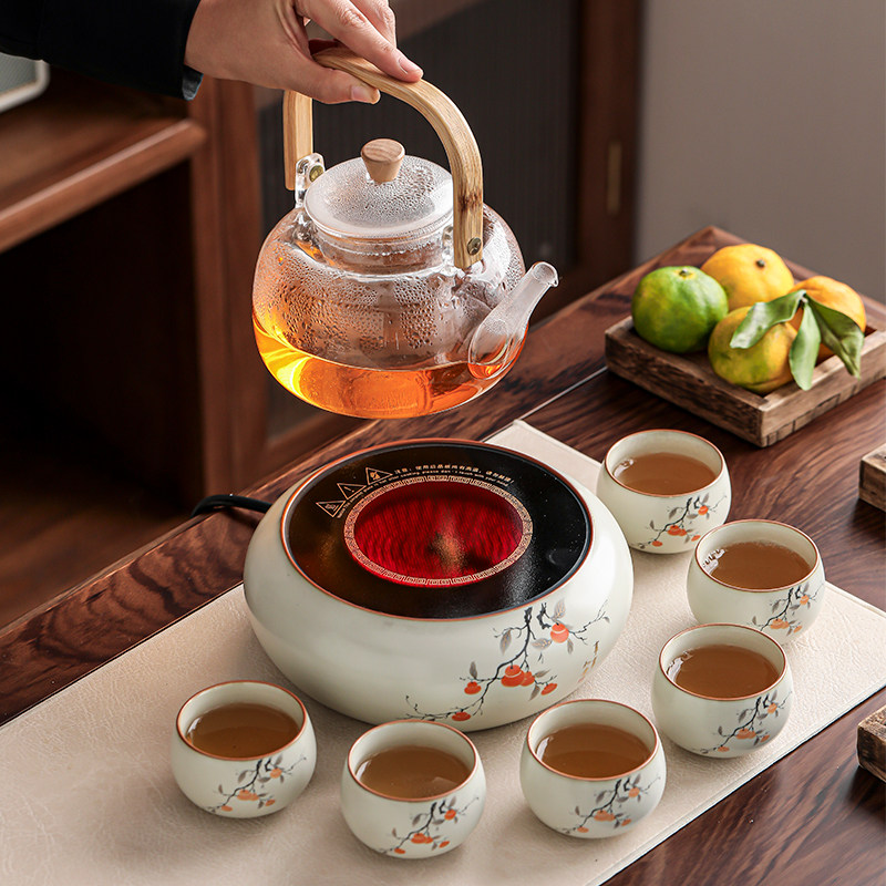 围炉煮茶电陶炉煮茶壶煮茶器加厚玻璃耐高温烧水壶泡茶汝窑煮茶炉