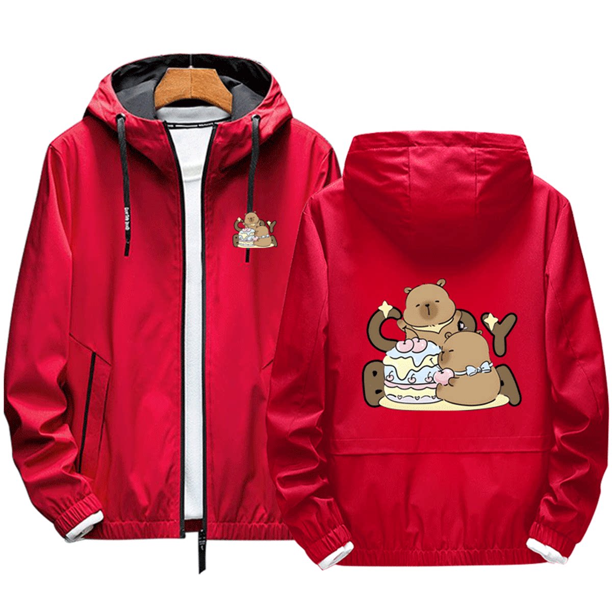 卡皮巴拉周边卡通可爱男女情侣休闲百搭定制秋冬连帽开衫夹克外套