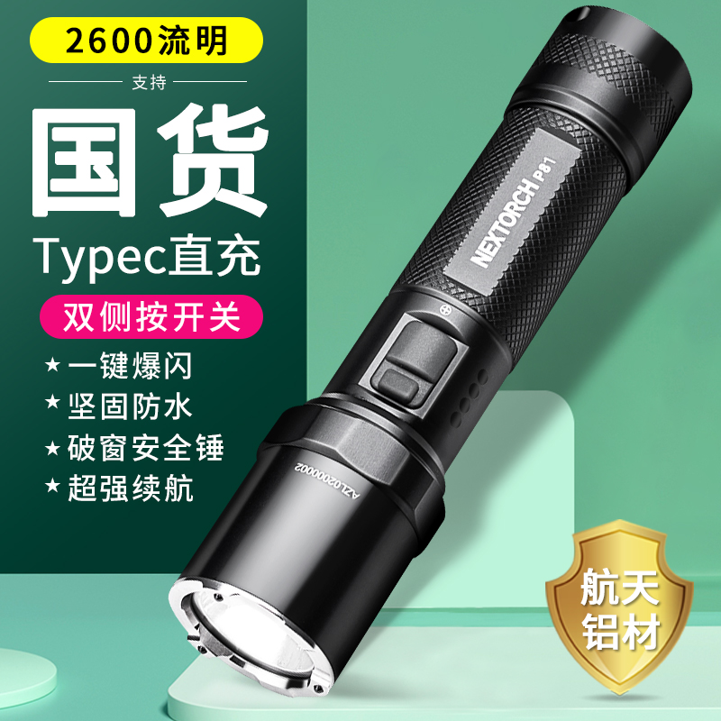纳丽德P80手电筒户外登山强光超亮远射充电式P81多功能一键强闪