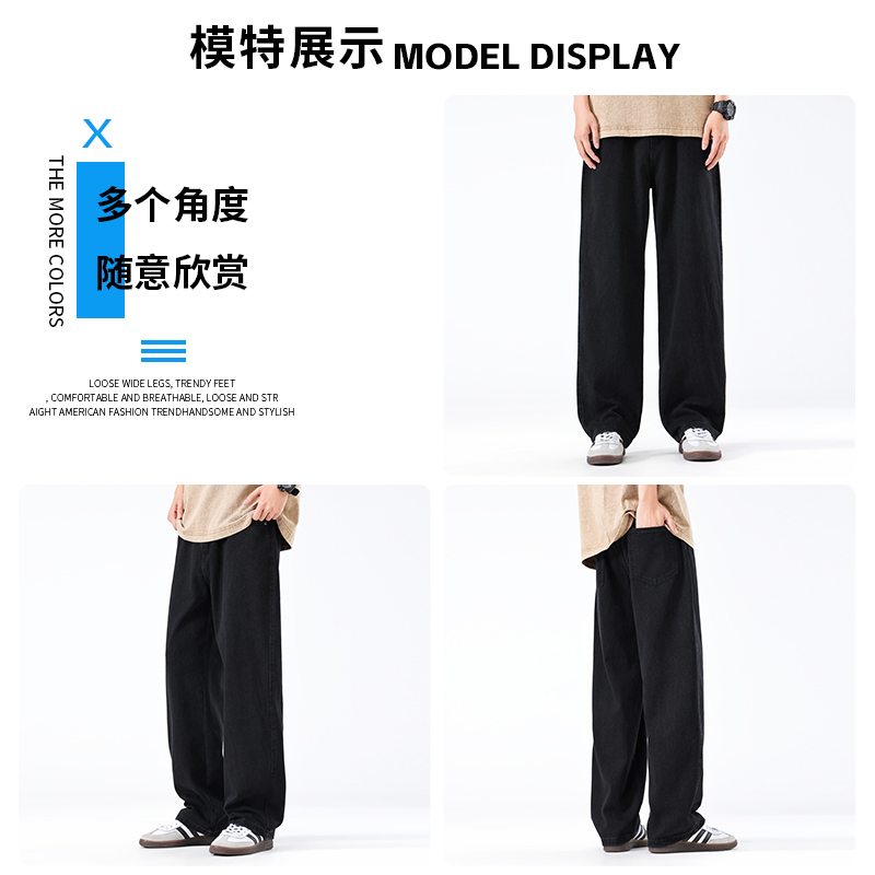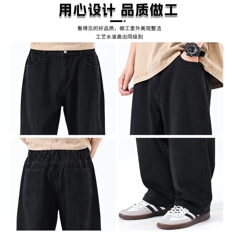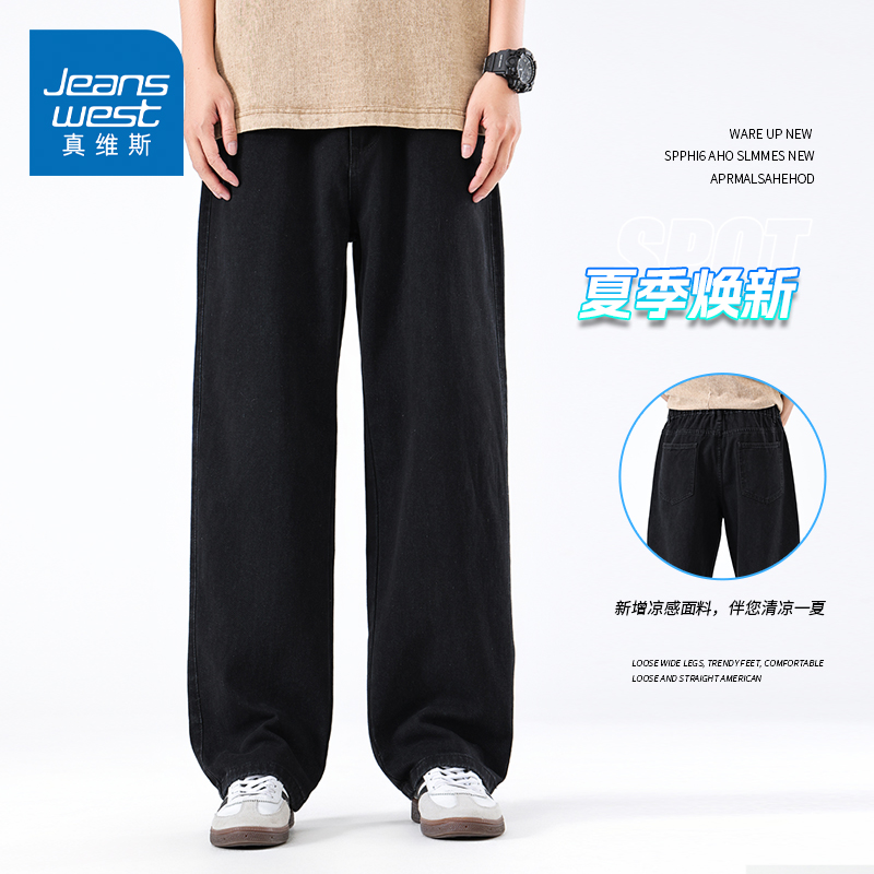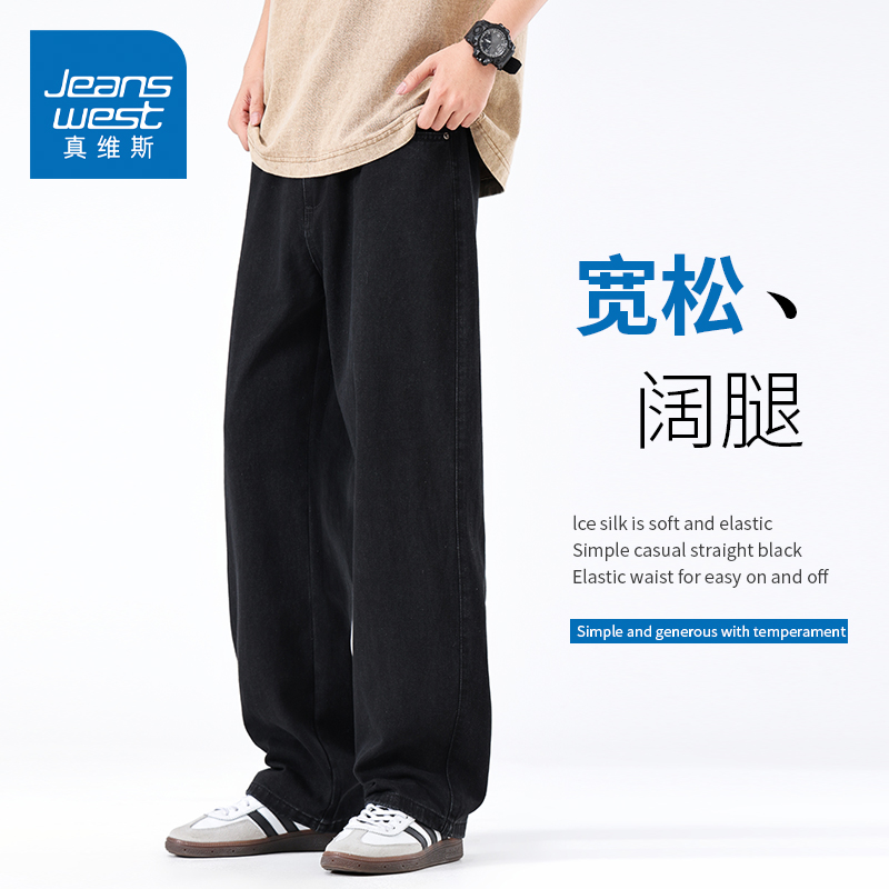 KZH真维斯高端牛仔裤男夏季新款宽松直筒裤黑色轻奢阔腿休闲长裤