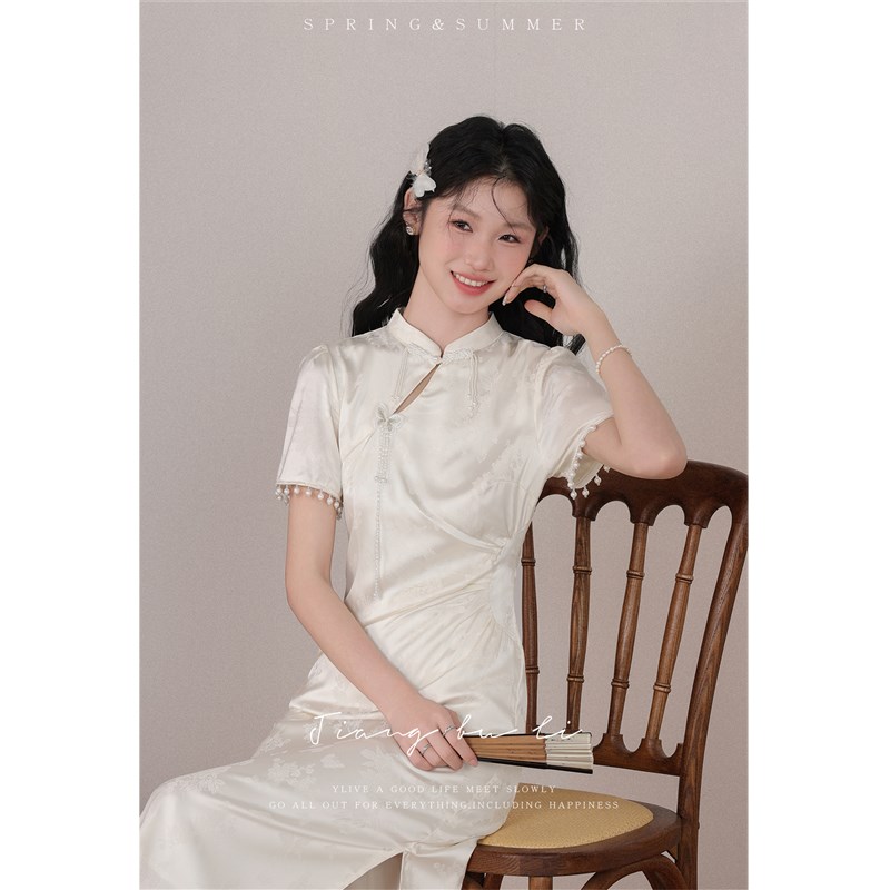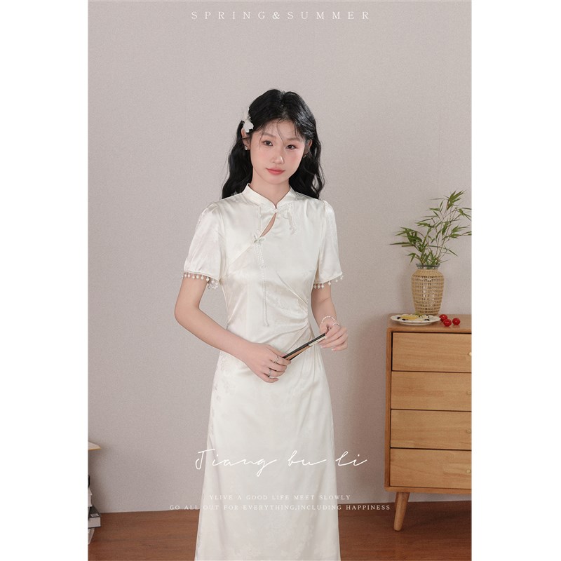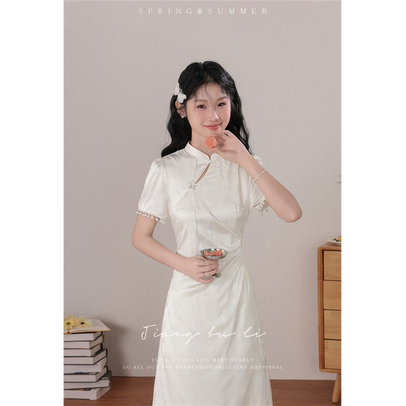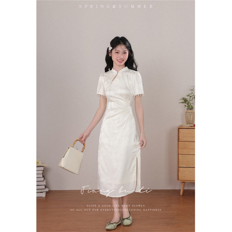 江不离【山月浪漫】新中式连衣裙2024新款女夏季国风旗袍短袖裙子