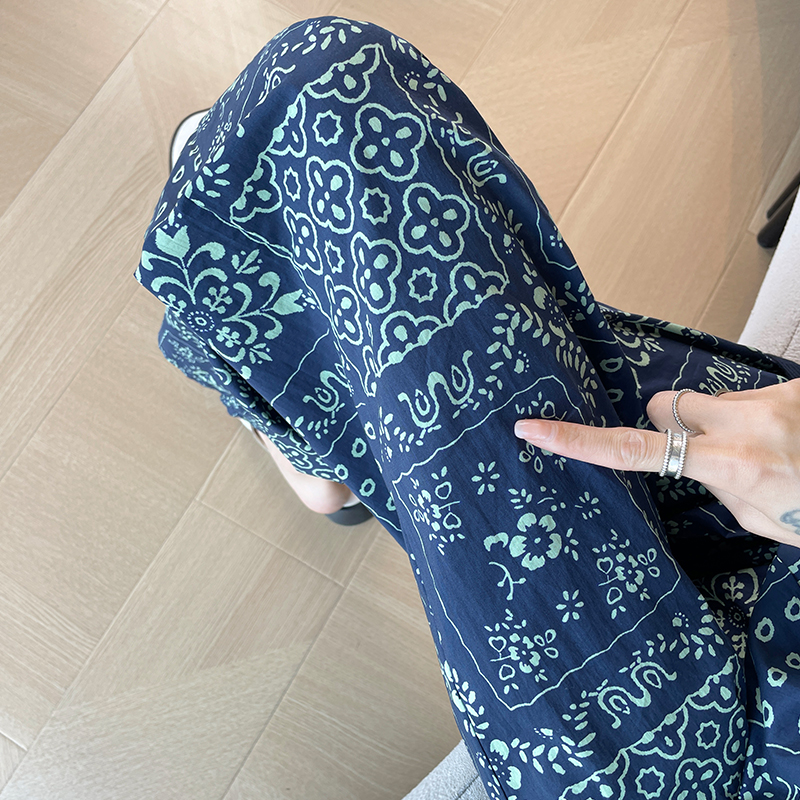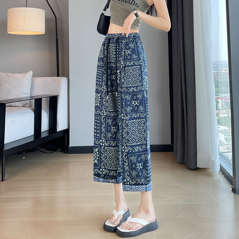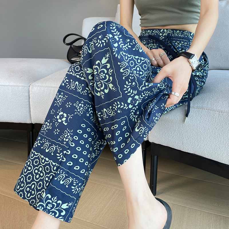 印花阔腿裤子女夏季薄款2025新款高腰显瘦宽松休闲直筒九分沙滩裤