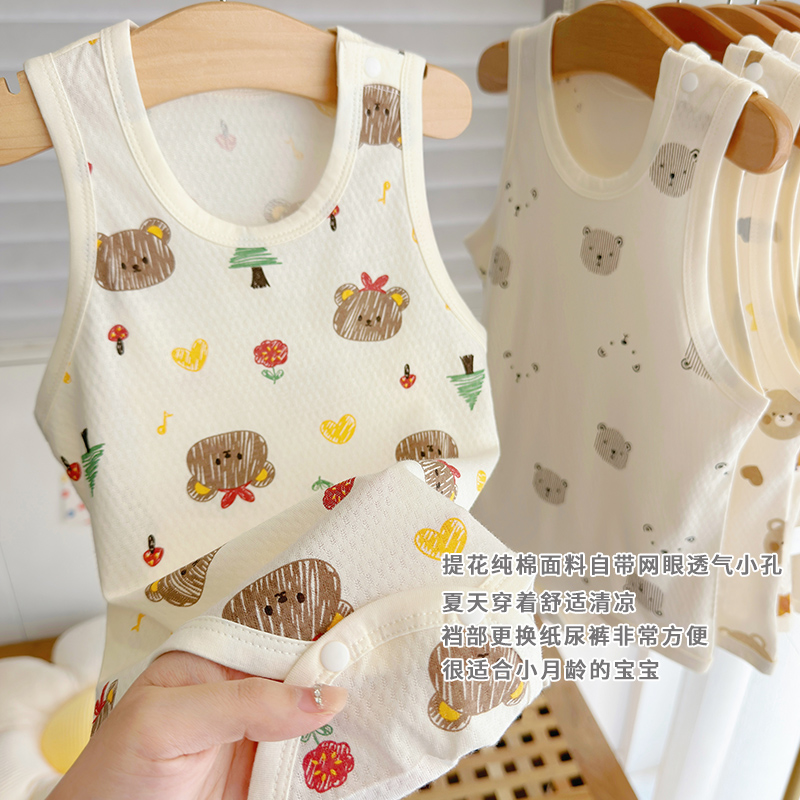 新生儿夏款纯棉提花背心连体包屁衣0哈衣短袖薄款男女宝宝2岁外穿