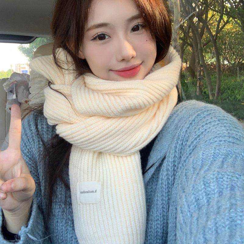 韩版百搭纯色毛线围巾女秋冬季2023新款学生加厚保暖针织情侣围脖
