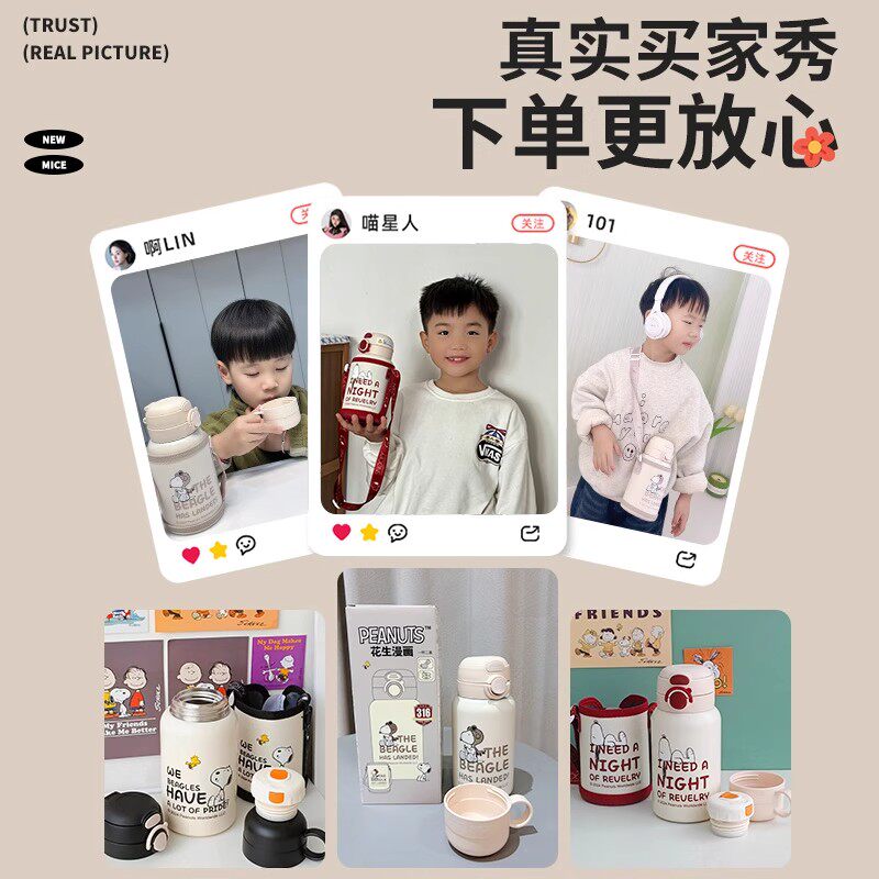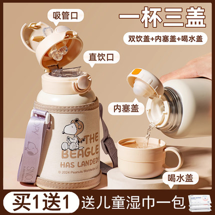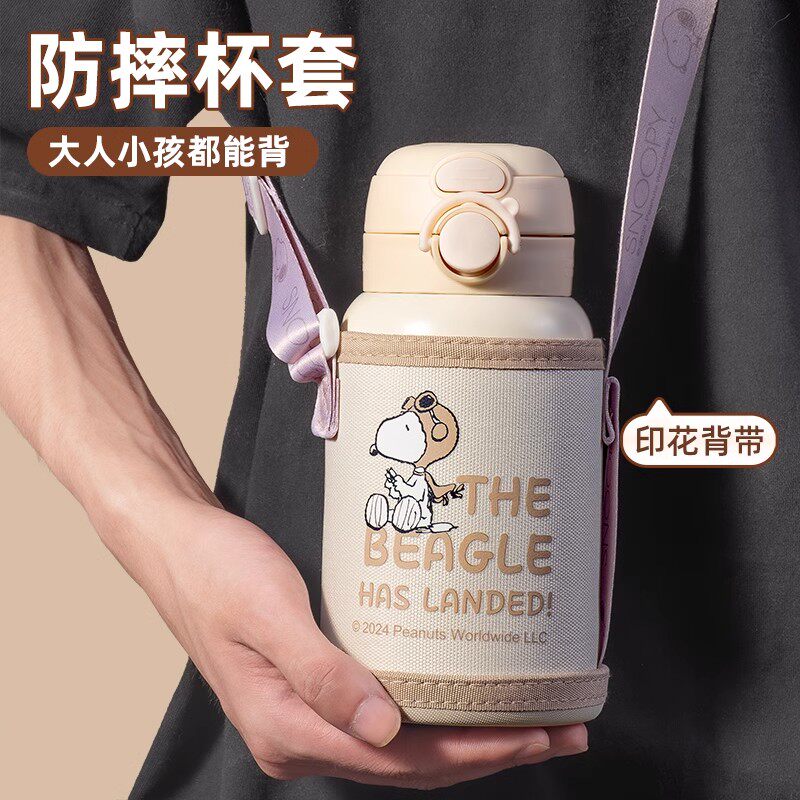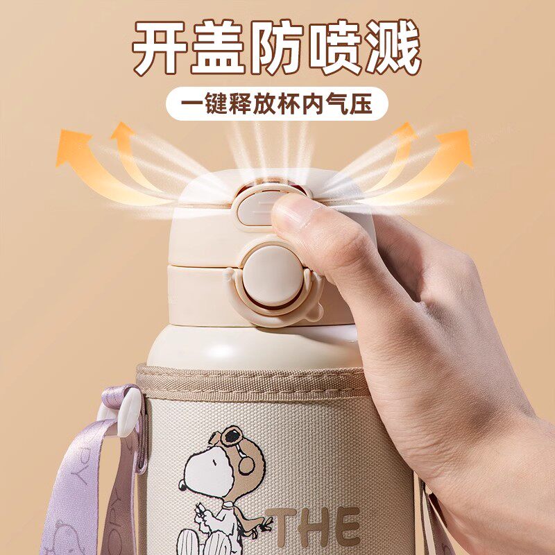 史努比儿童保温杯男孩上学专用女生吸管双饮杯子小学生幼儿园水壶