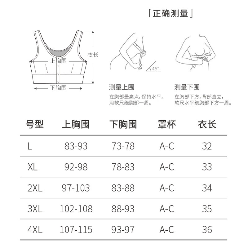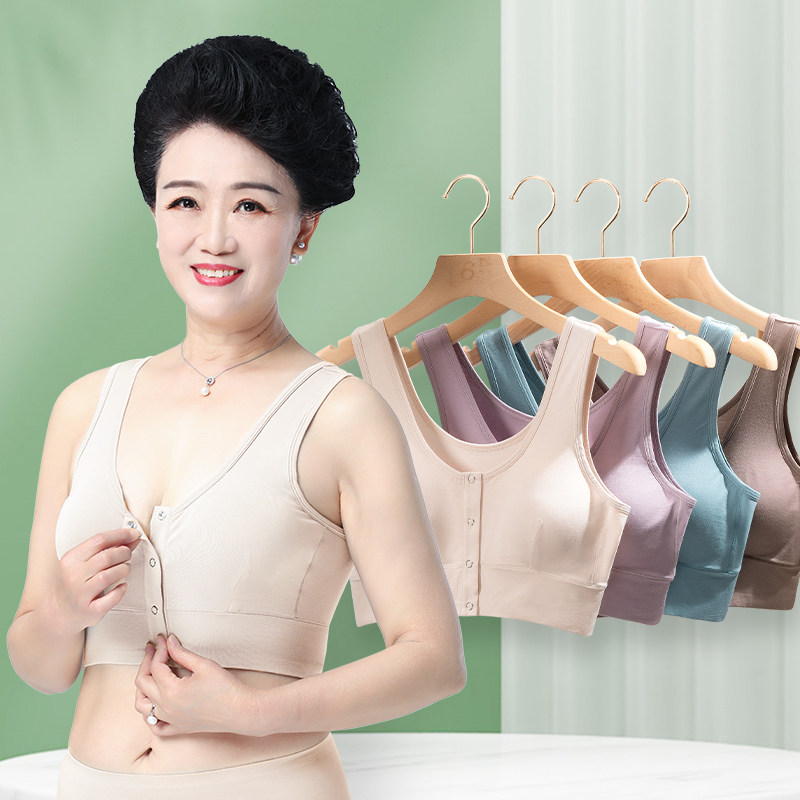 春织老人文胸前扣背心式大码妈妈内衣女中老年薄款夏季胸罩无钢圈