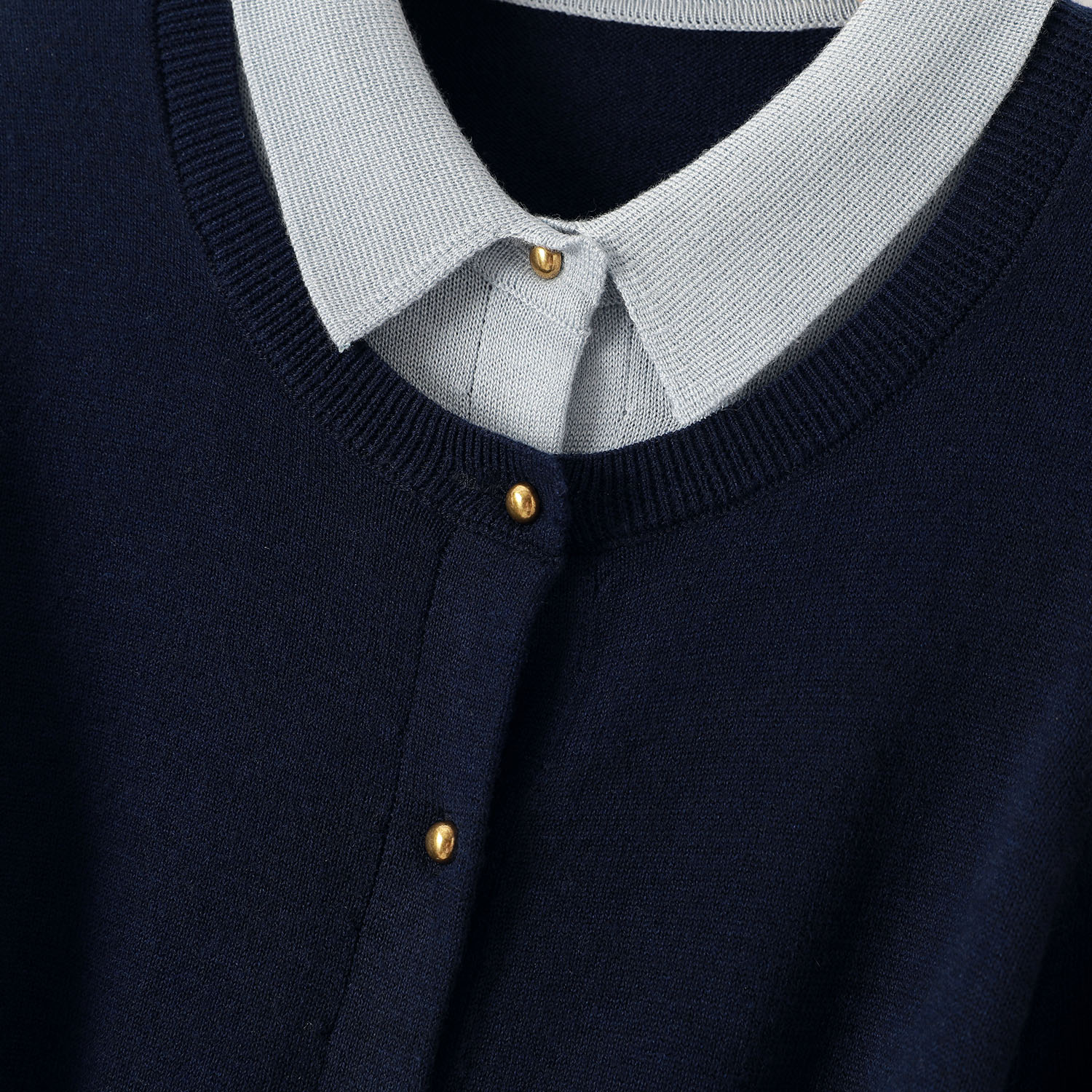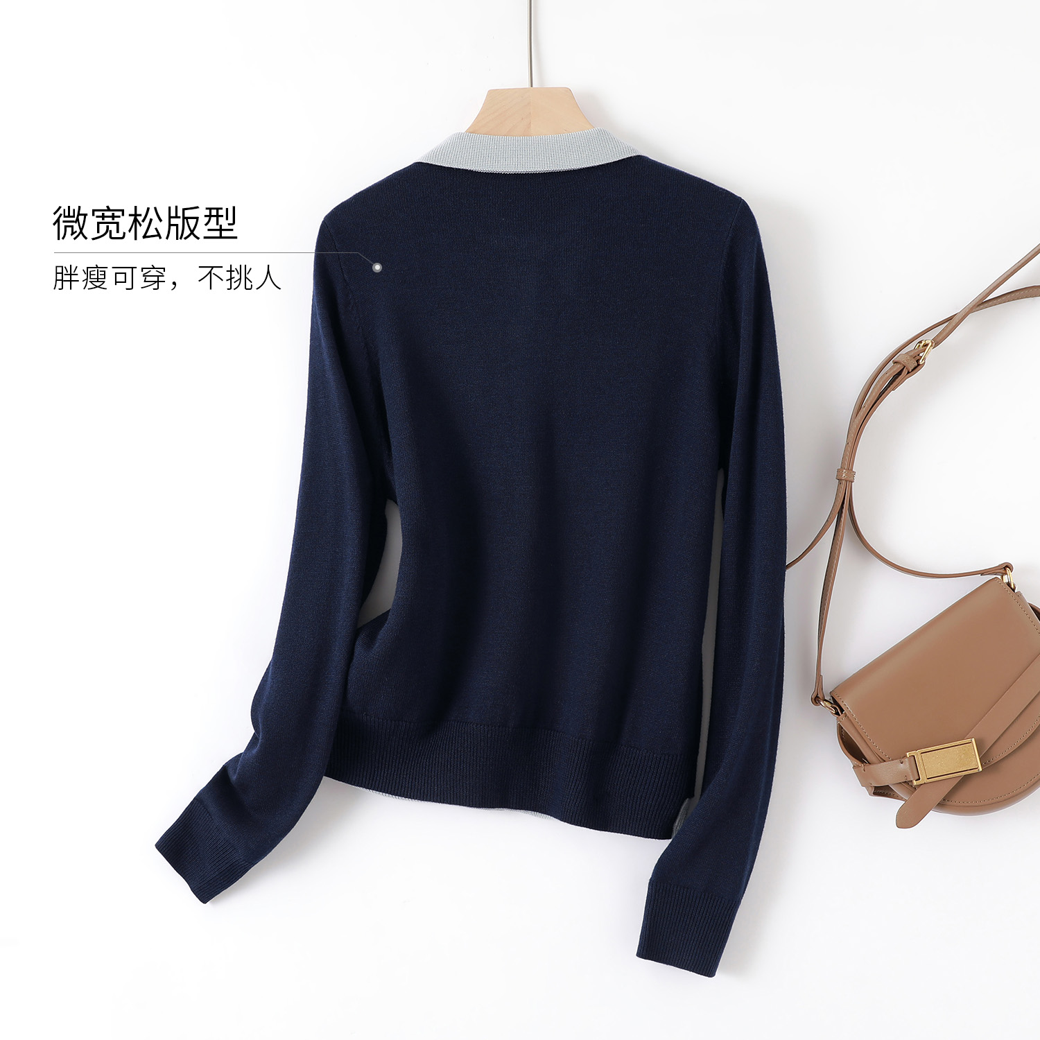 IHIMI/海谧2025年秋季新款女装气质时尚百搭翻领假两件针织衫上衣