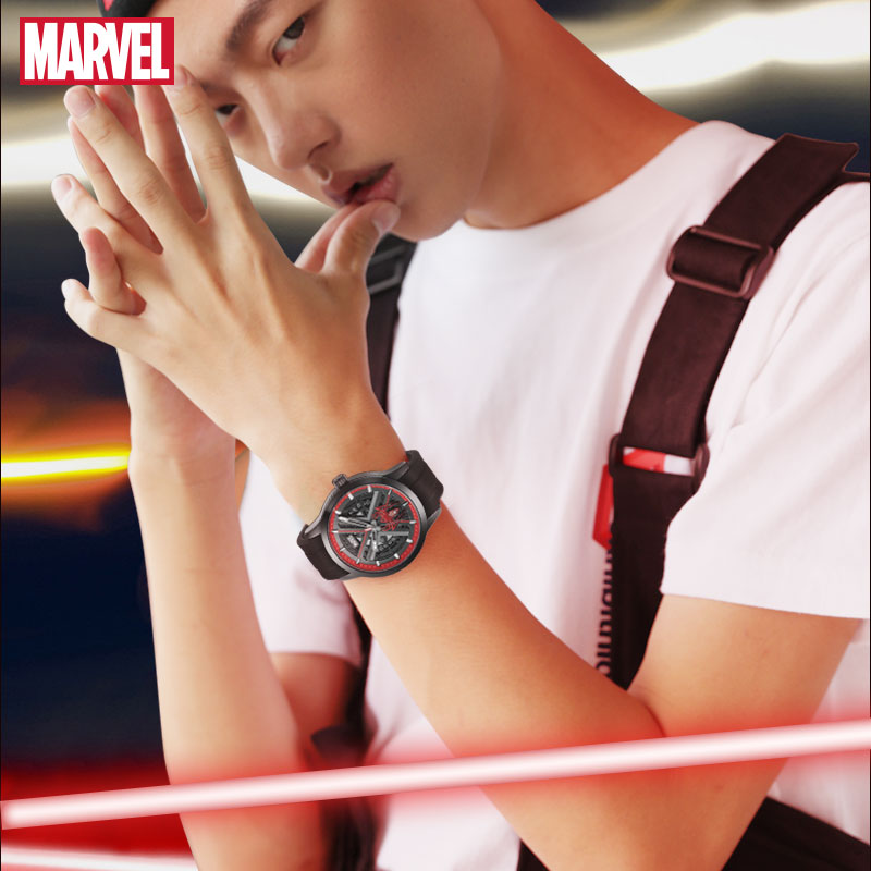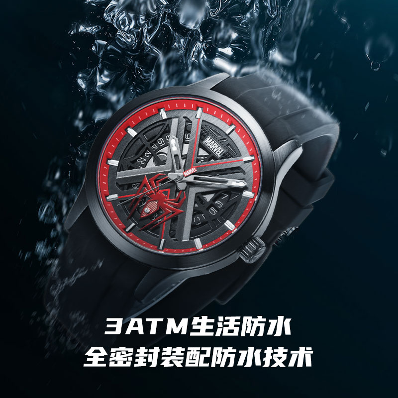 漫威蜘蛛侠联名手表男款学生初中高中生青少年潮流镂空男士机械表