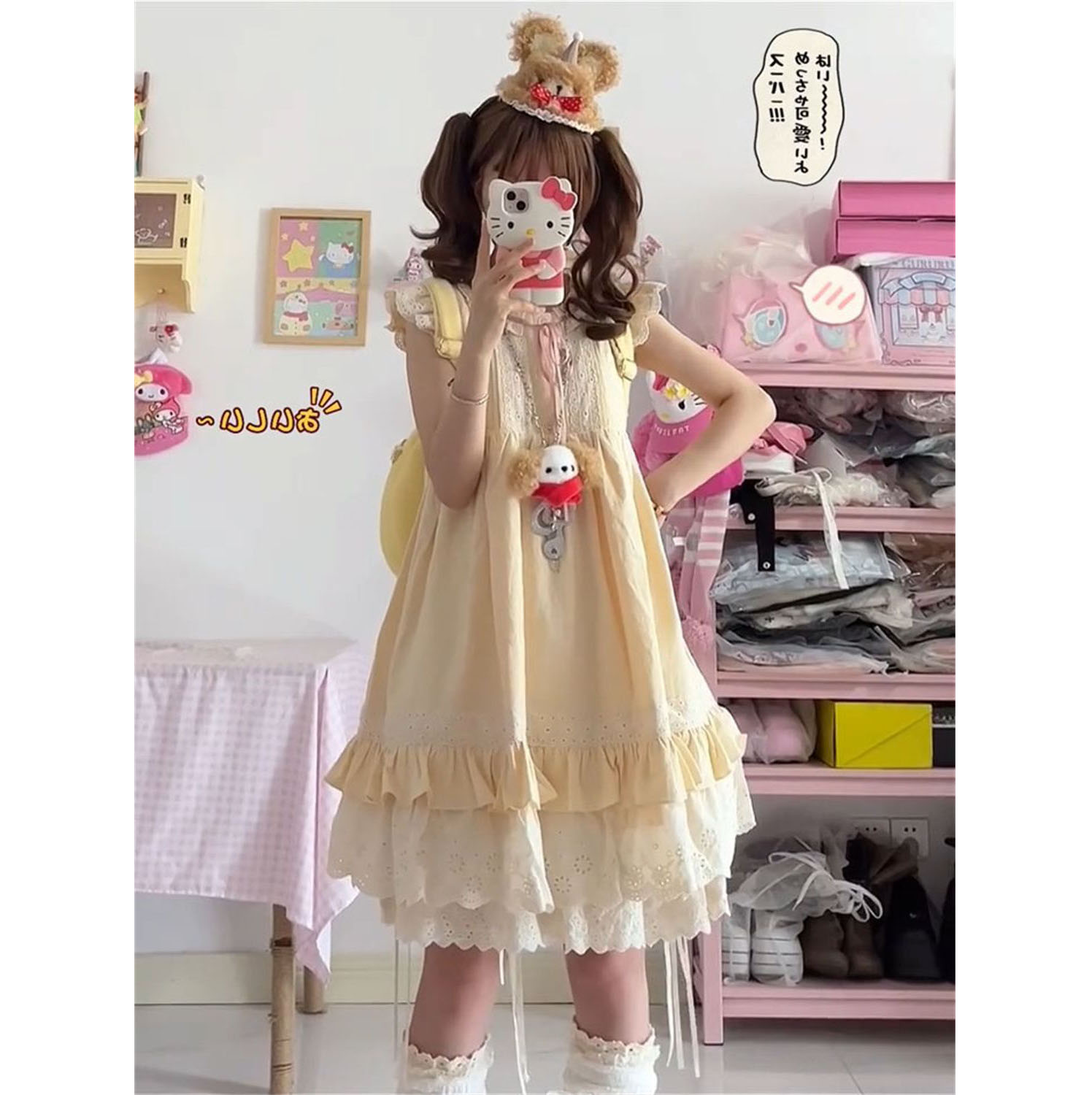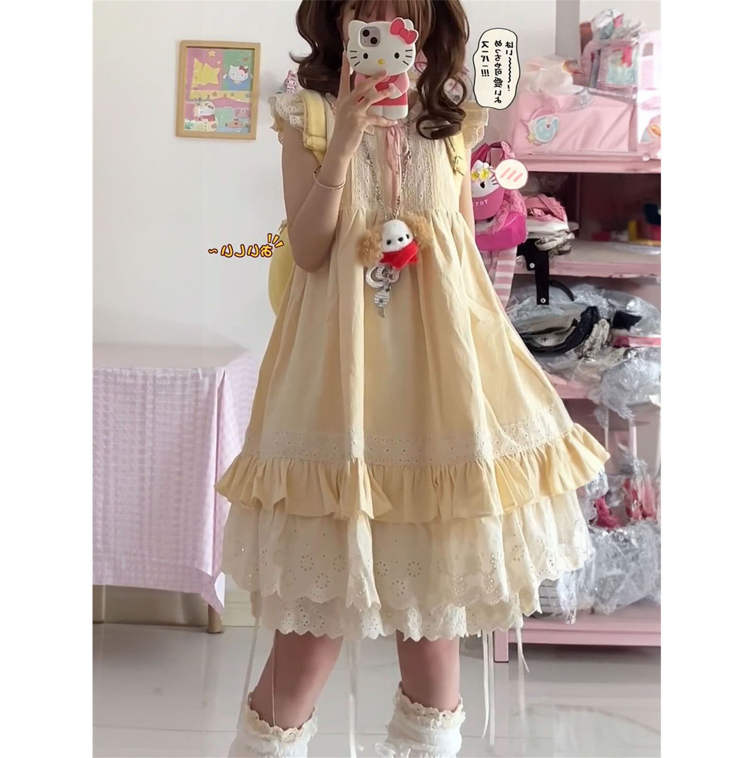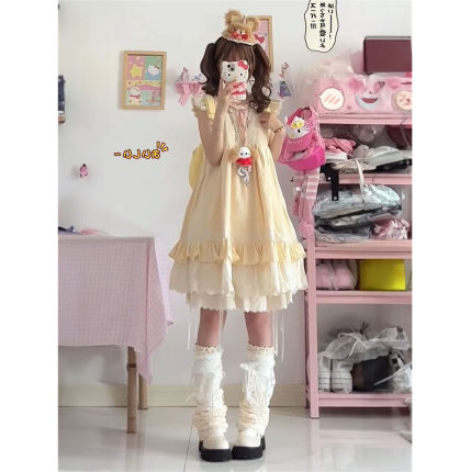 2025夏日新款日系甜美小飞袖连衣裙女宽松显瘦无袖遮肉公主短裙子