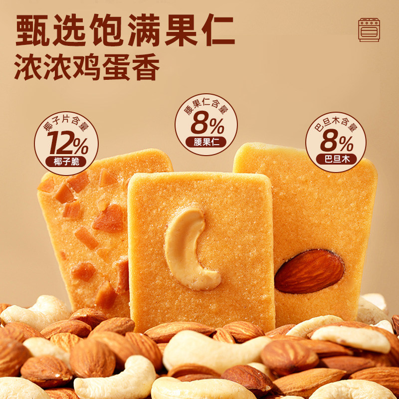 天猫甄选坚果芙脆饼干单独小包整箱巴旦木椰片腰果曲奇休闲小零食