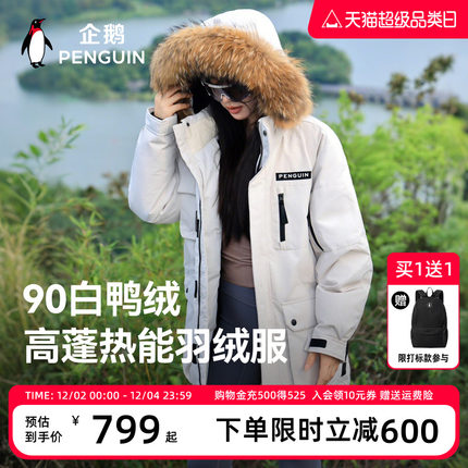 企鹅【极光】羽绒服男女25冬新款大毛领户外防风加厚中长款派克服