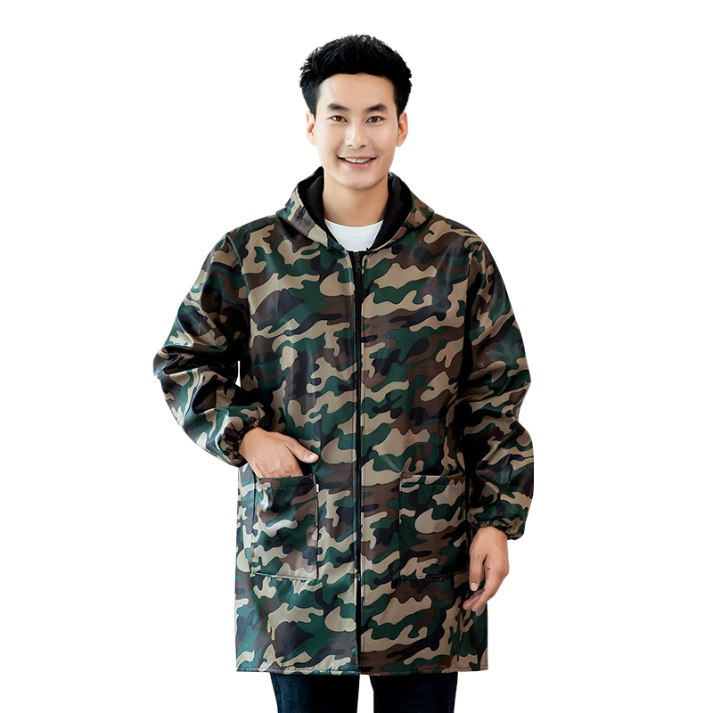 男士长袖加绒加厚罩衣大人防水防油家用厨房围裙外穿大褂工作服冬