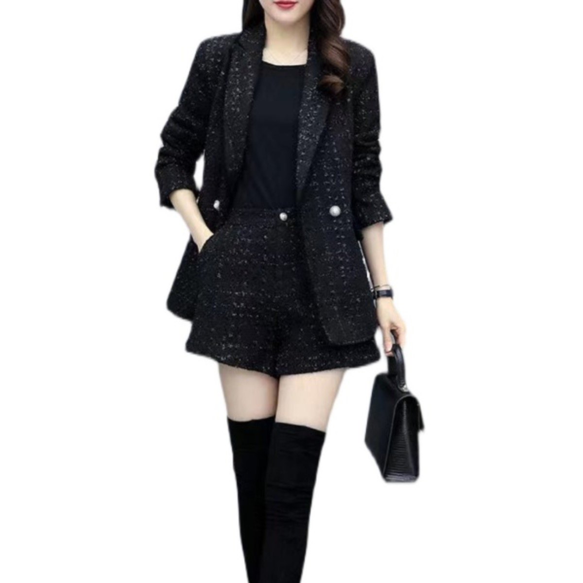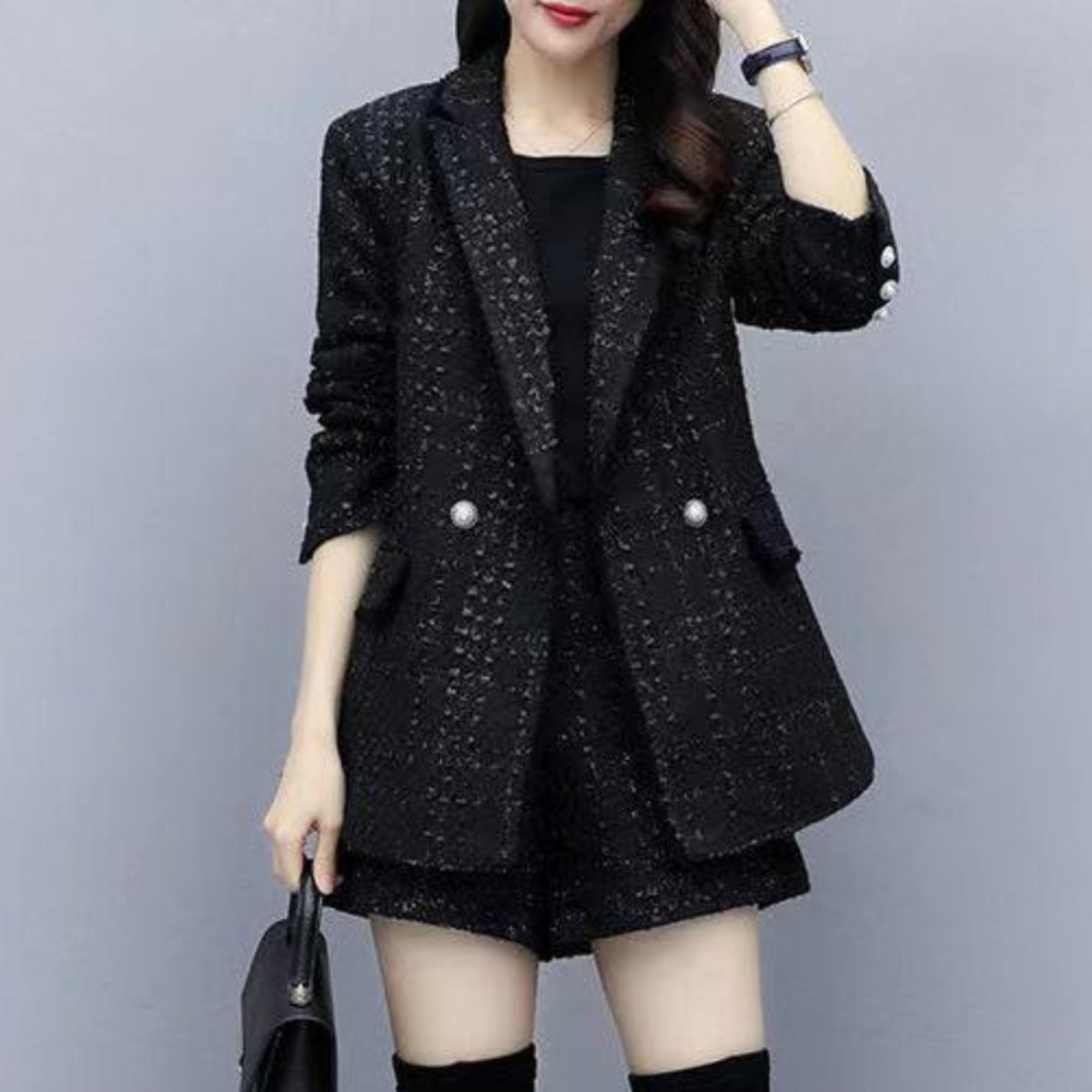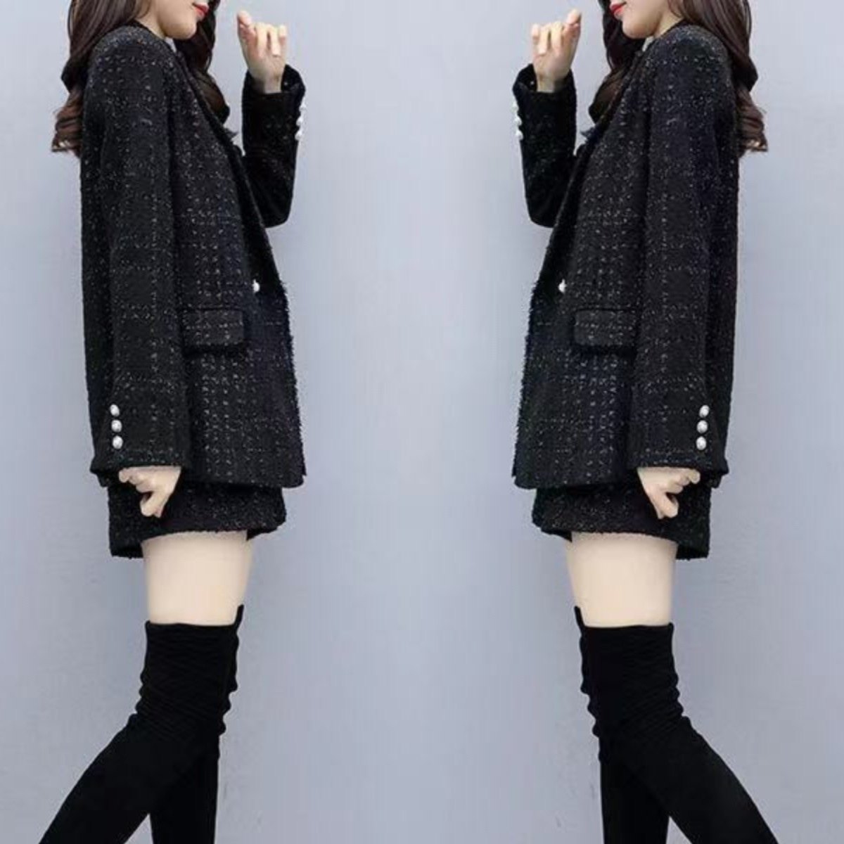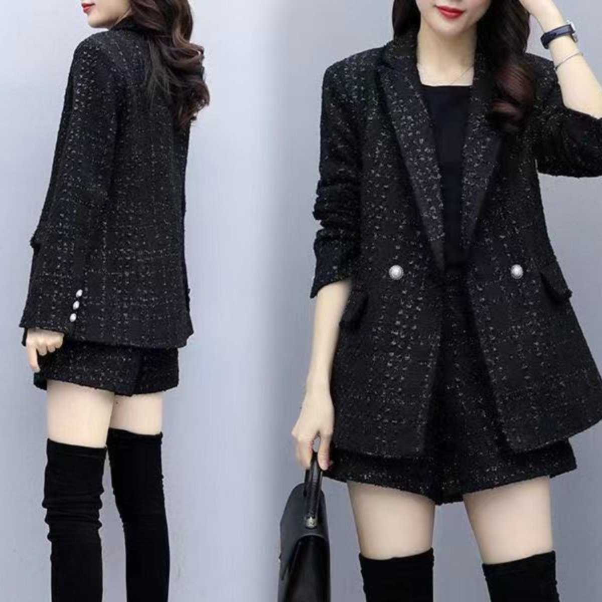 西装外套胖妹妹小香风短裤套装
