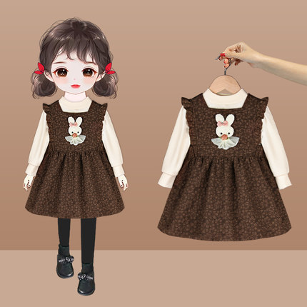 女童连衣裙2件套春秋2025新款洋气周岁宝宝礼服时髦公主裙子套装