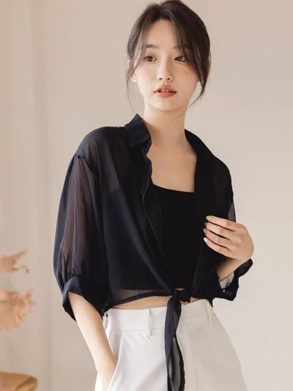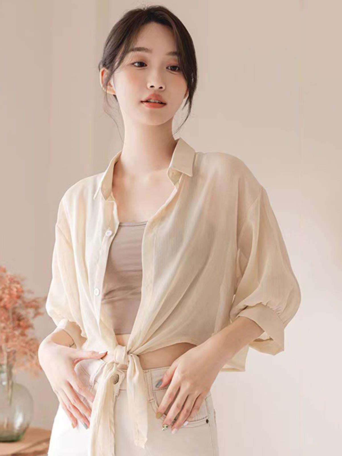 雪纺防晒衣开衫女2025年夏季白色七分袖薄款披肩外搭衬衫上衣外套