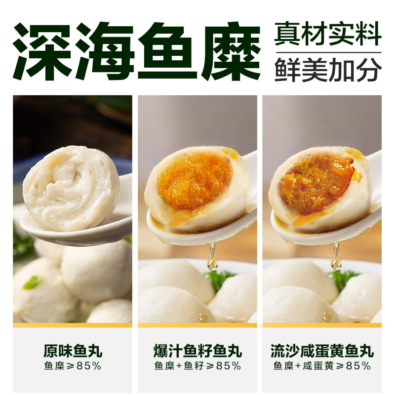 臻选潮汕鱼丸鱼籽鱼丸咸蛋黄鱼丸组合潮汕原产地1500g/内6包