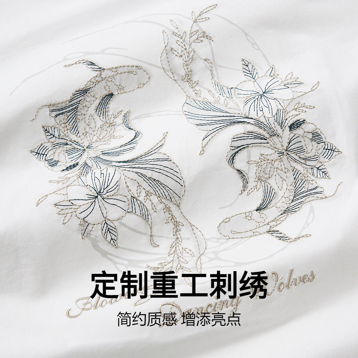 与狼共舞短袖重工刺绣凉感T恤男