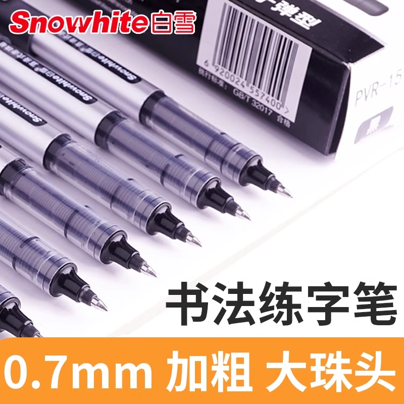 白雪黑色0.7mm直液式走珠笔练字专用笔0.5mm针管中性笔硬笔书法粗笔画签名签字成人正楷学生用笔红笔0.5水笔