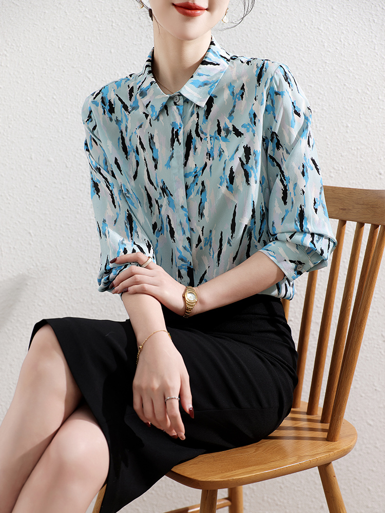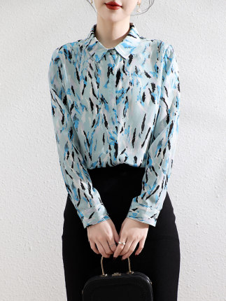 2025秋高端品牌桑蚕丝真丝衬衫女长袖杭州丝绸通勤显瘦印花上衣OL