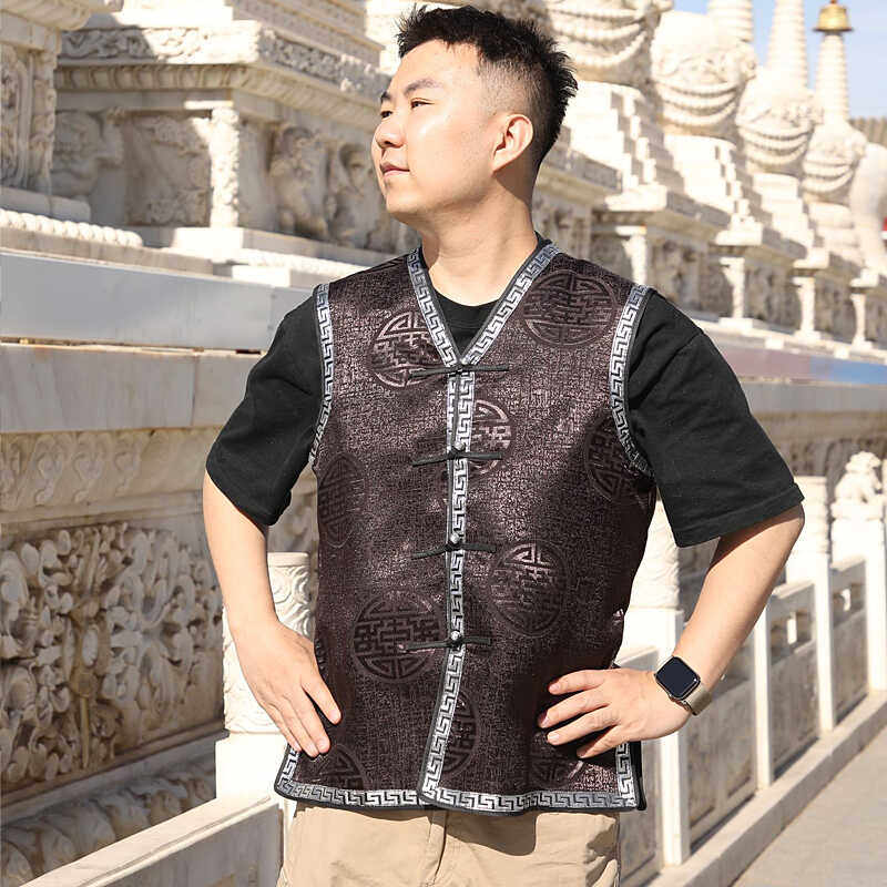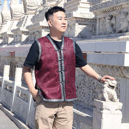 新款蒙古族马甲男士蒙族马夹蒙古男装蒙古元素马甲短款日常演出