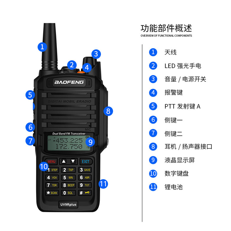宝锋BF-UV9R PLUS对讲机民用防水大功率宝峰5R手持户外自驾游船用