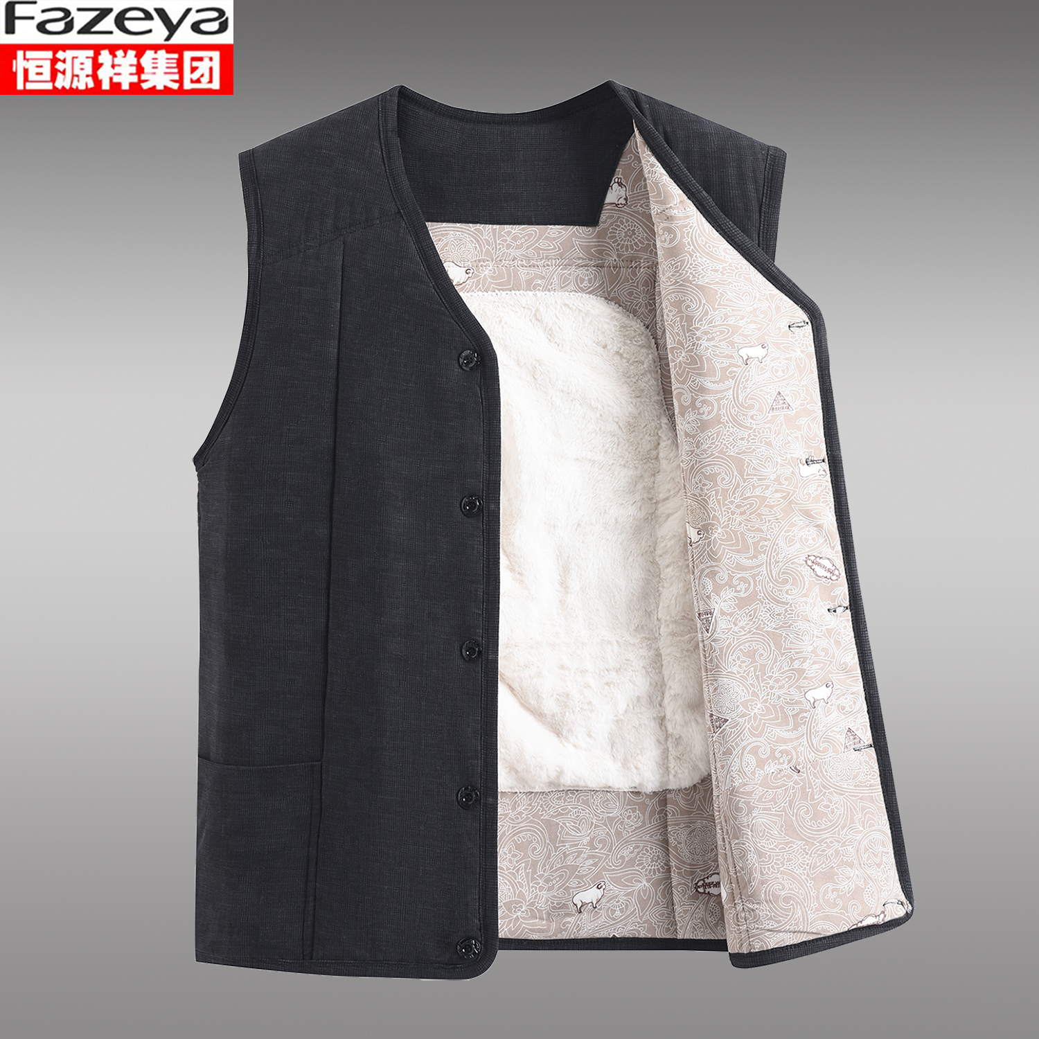 恒源祥集团彩羊中老年男驼绒棉马甲加厚保暖宽松坎肩棉背心爸爸装