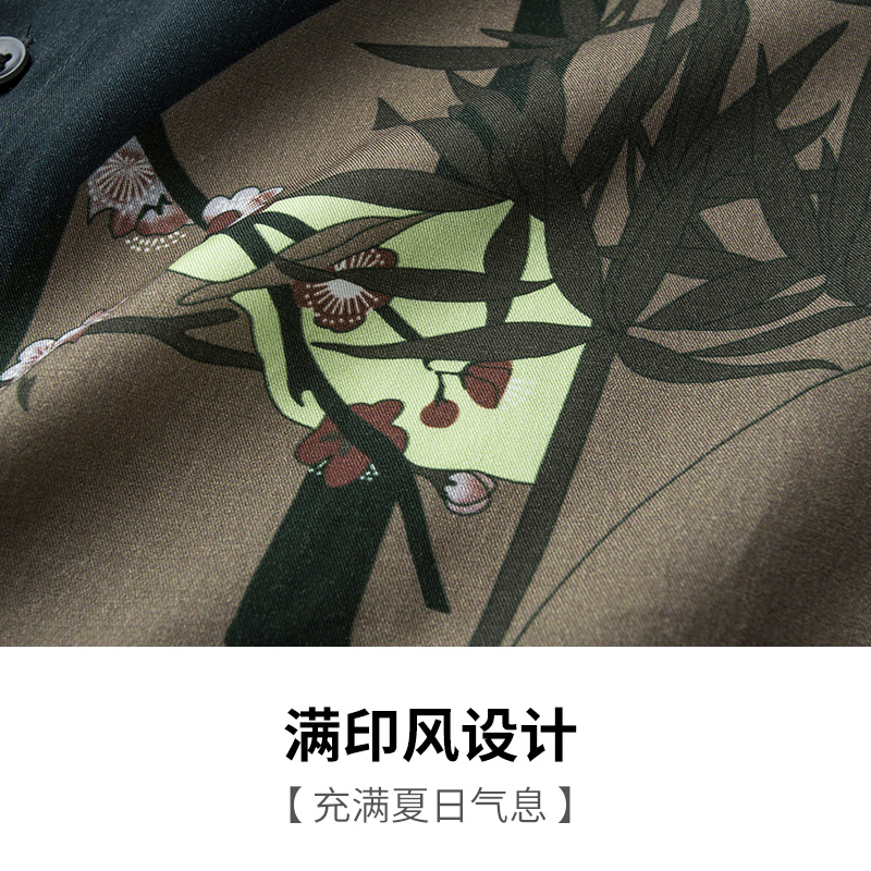 【商场同款】才子男装印花短袖衬衫男2024夏季新款垂顺短袖衬衣