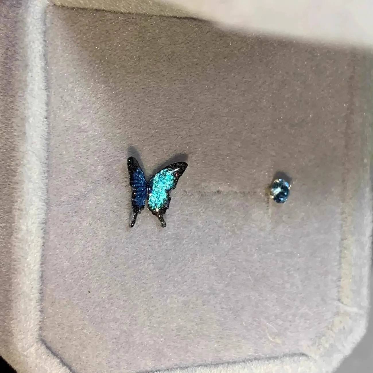 不对称蓝色蝴蝶锆石耳钉2025新款