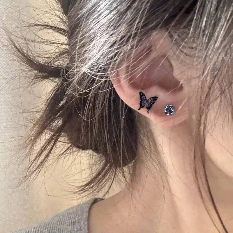 不对称蓝色蝴蝶锆石耳钉2025新款爆款高级感轻奢小众独特漂亮耳环