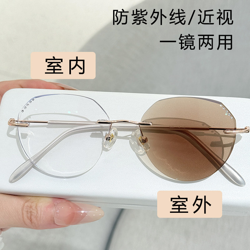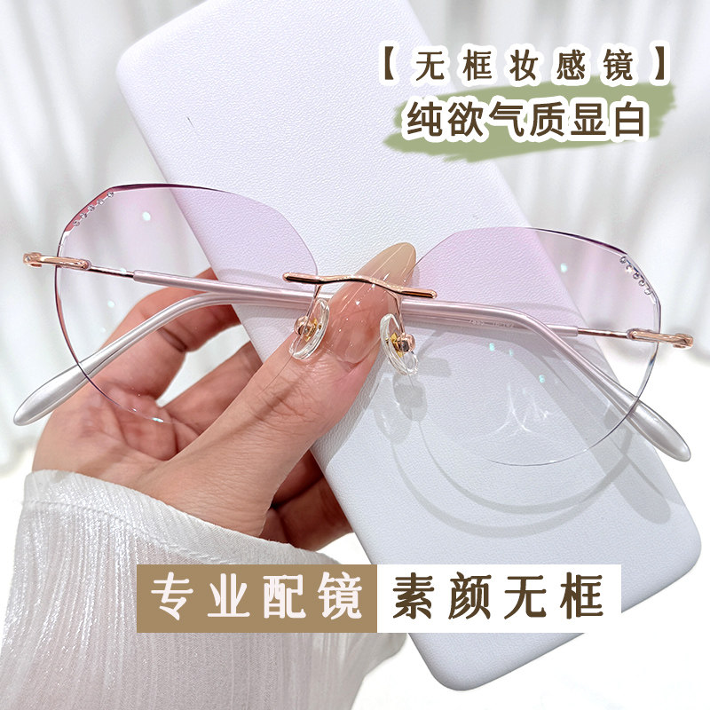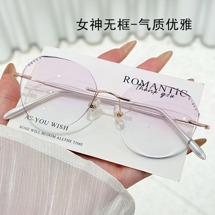 超轻大框无框眼镜架配近视眼镜女瘦脸韩版钻石切边防蓝光有度数潮
